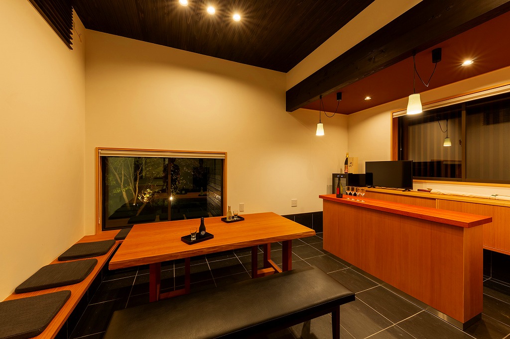 和長折衷と言えましょうが、役割的には「囲炉裏」だと思います。同じ土間にバーカウンターがあり、飲み食い談笑が出来るスペースとなっています。ね、囲炉裏端でしょ!