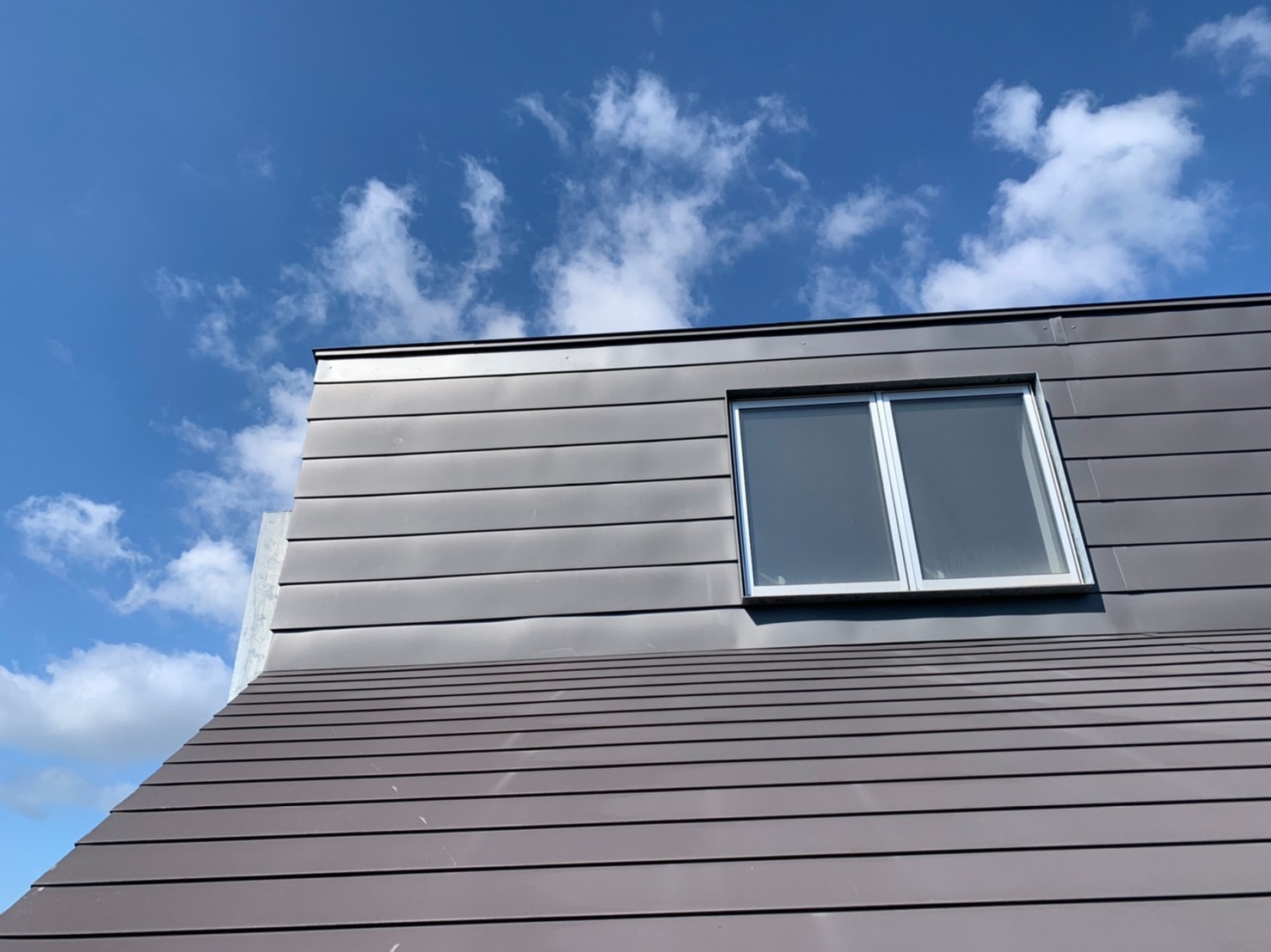 その後、板金屋さんのミヤザキさんに外壁ガルバを施工してもらいました。