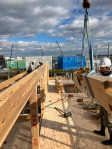 6人ほどの大工さんによって約2日間で屋根まで施工されます・