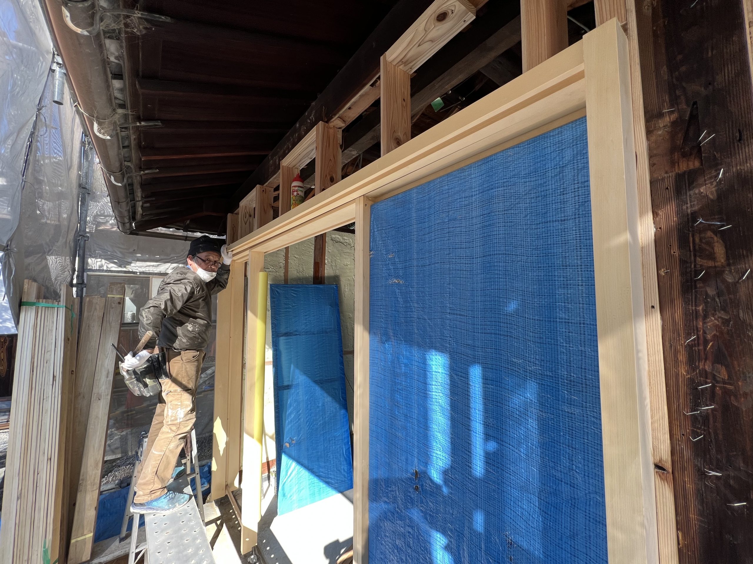 こちらの写真は玄関部分の造作工事をしている様子です。