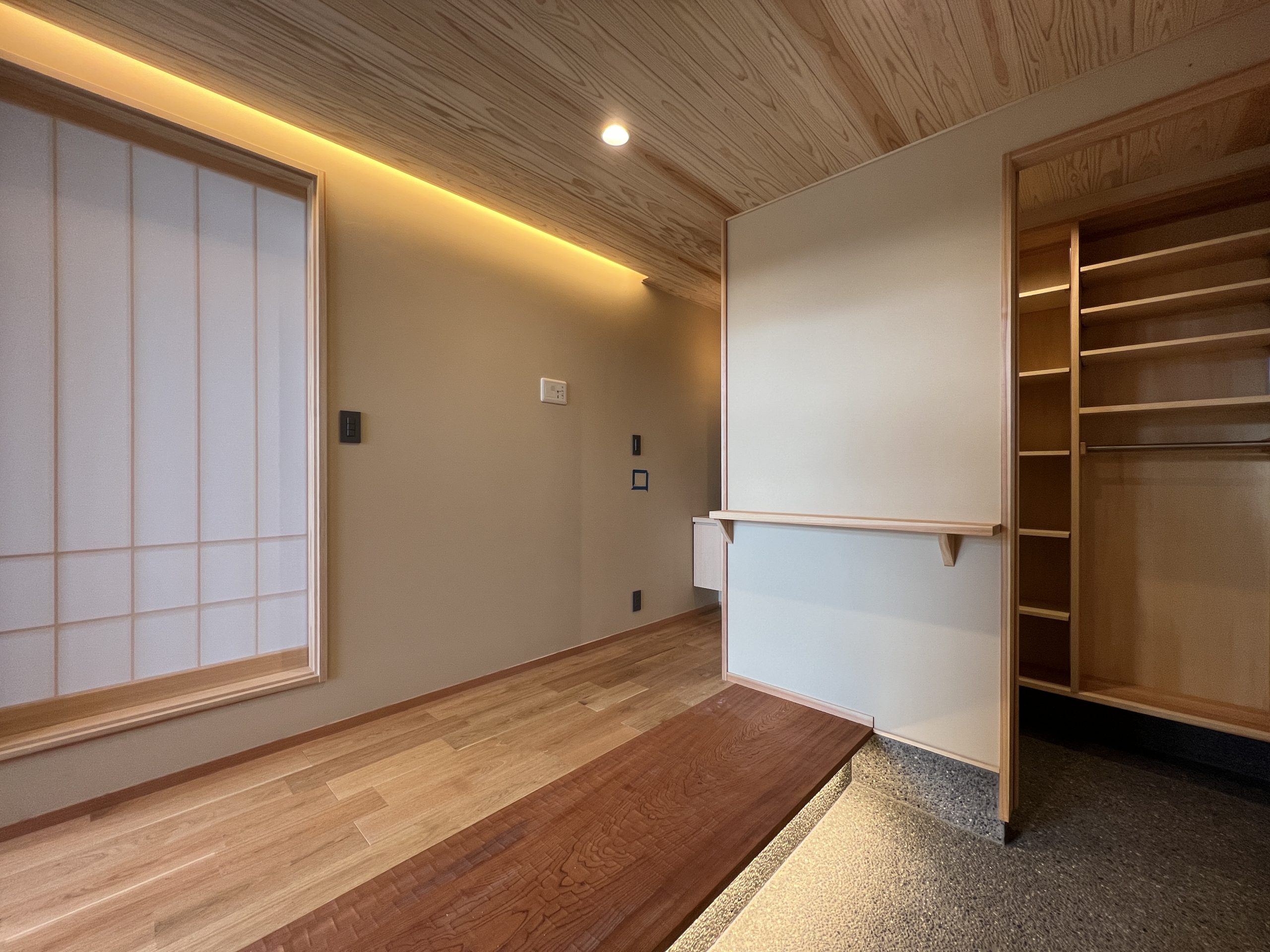 玄関部分は招き入れる場所として、きれいにすっきと見えるようにSRを設けています。