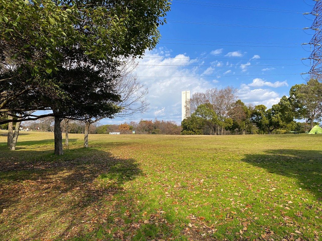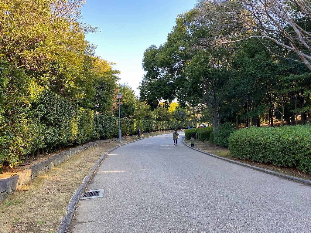 イメージして頂きやすいよう、公園の中央にある大芝生広場と、公園内周回道路の写真を載せておきます。