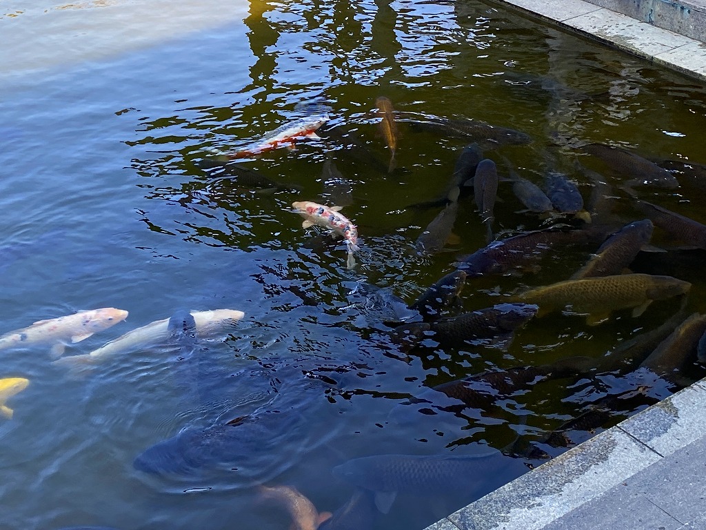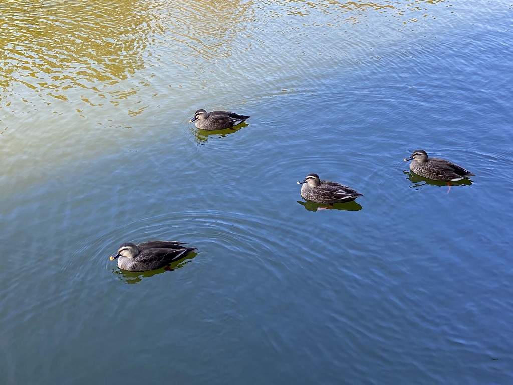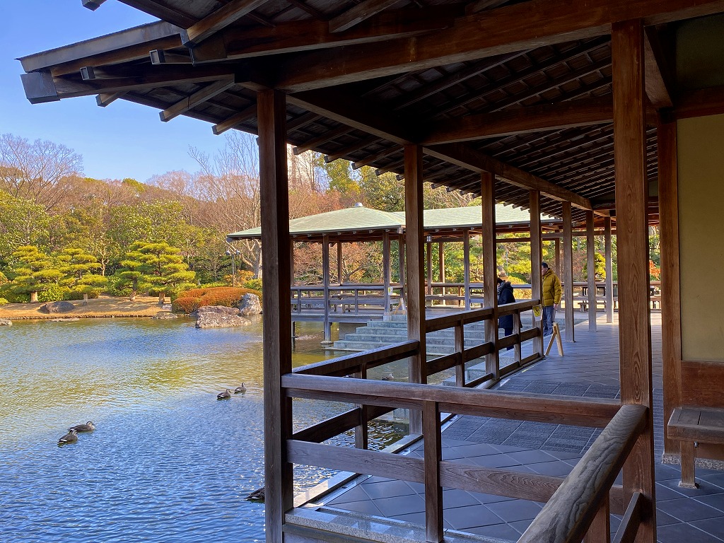 池にはゆったり鯉が泳ぎ、鴨ものんびり羽を休めておりました。