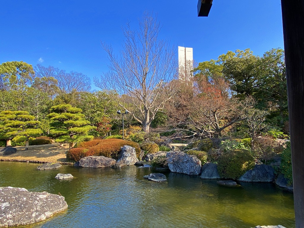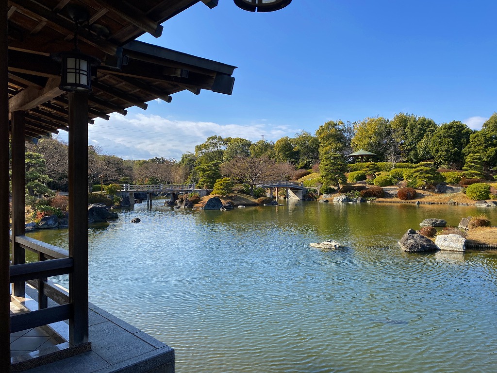 この公園には、パンフレット表紙の紹介文にも書かれてあるように、日本庭園があります。古民家好きの私としては、以前からその存在が気にはなっていたのですが、この正月に、ついにその中を拝見をしてまいりました。今日は、こっちの話です。