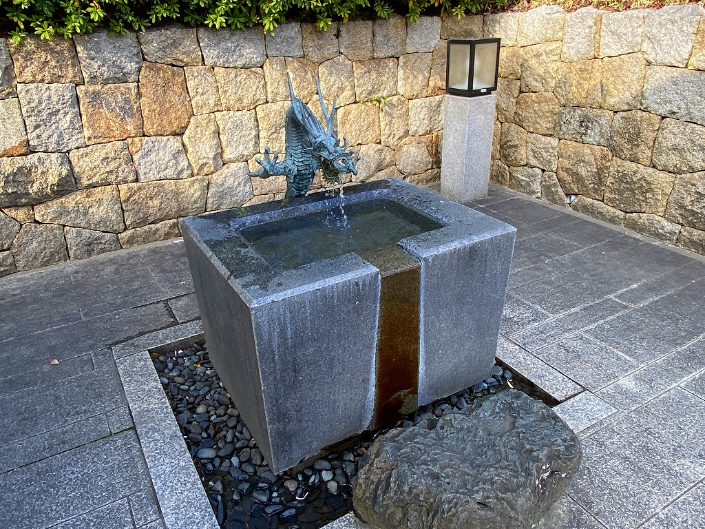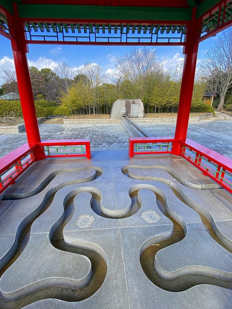 堺の友好都市中国の連雲港市から贈られた石に流れを彫み、曲水を再現しています。