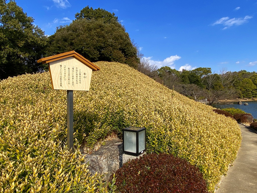 石津川の源である泉北丘陵を表しています。春には、桃、梅、牡丹などの花が楽しめるそうです。
