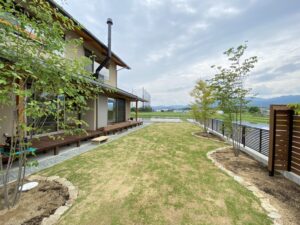 奥の景色と合わさって、まるでどこまでも続いてくかのようなお庭。先程紹介した物件もそうでしたが、この手のお家は敷地が広く、お庭を広くとれるのが魅力的ですね。