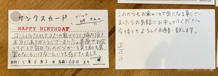 直接はもちろん伝えるのですが、改めてカードに記入して感謝を伝える。