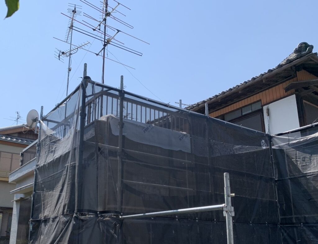 足場業者による、とある現場での「部分架け足場施工」の様子を見て頂きましょう。