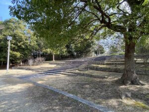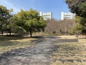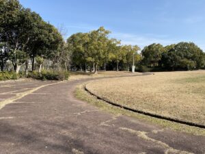 でっかい芝生広場があります。このエリアの南側にはグラウンドもありますよ。