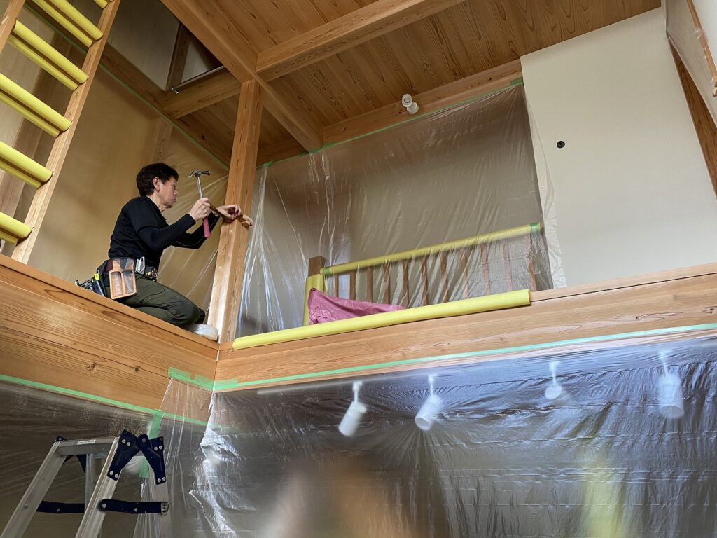 施工には5日ほどかかりました。その間の大工の活躍を、ちよっとだけご覧に入れたいと思います!