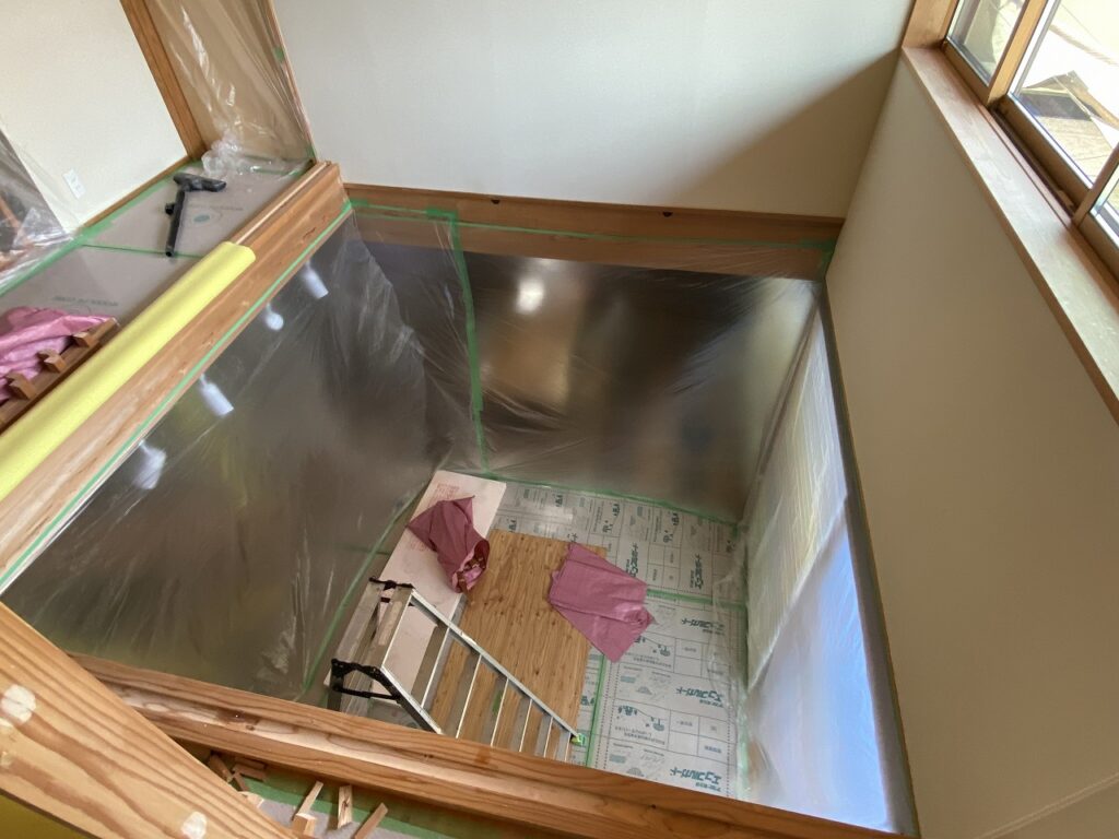 高槻市のF様よりのご依頼で、吹き抜けに床を造りました。普通に床を造り、部屋を増やす、といといった施工例は、過去にいくつもあるのですが、今回作った床は、スノコ状です。