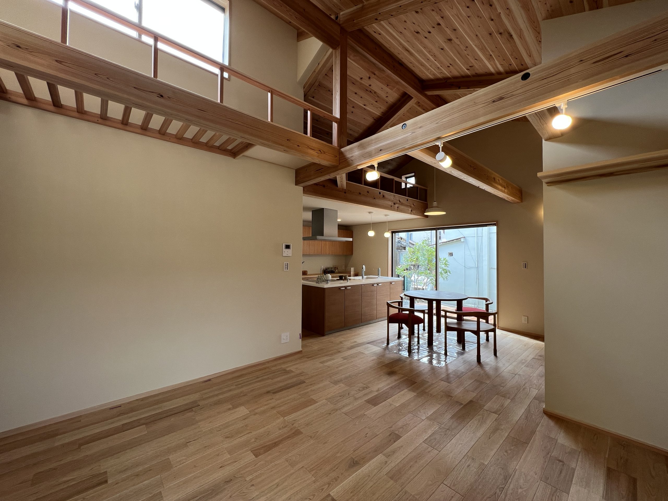 2階が無い分、建物の躯体が負担する荷重は減り、 家族それぞれの個室などをもうける際には必然的に間仕切りの壁が 増えるので耐震の計画もしやすくなります。