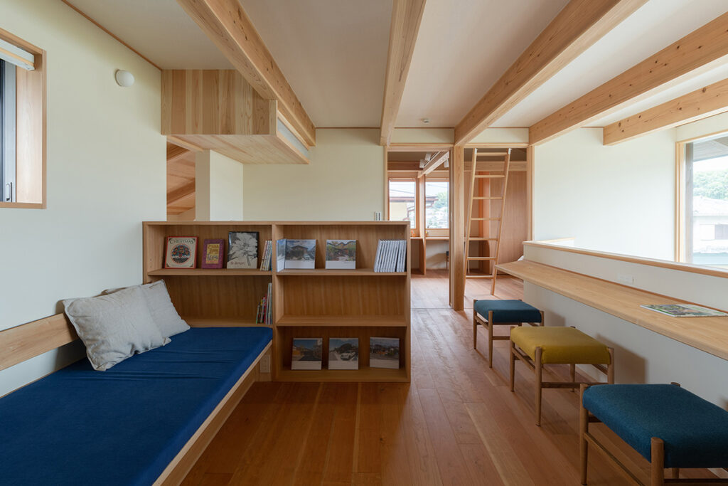 今回、ガレージのあるお家での開催ですが、ガレージを除いても50坪ほどの広さがあります。寝室とLDKの2か所から2階へ上がれたり、中2階がある点も特徴的です。