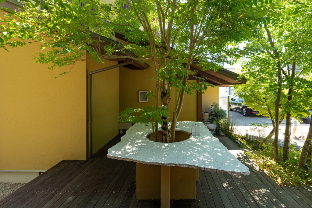 また、樹木が作る木陰は頭上からの日射しと、それによる足元からの赤外放射を軽減するため、同じ気温でも体感温度が7度ほど低くなると言われています。落葉樹を植えることで夏場は木陰で日射しを遮り、冬には葉を落とすことでお家の中に陽射しを取り込むことができます。