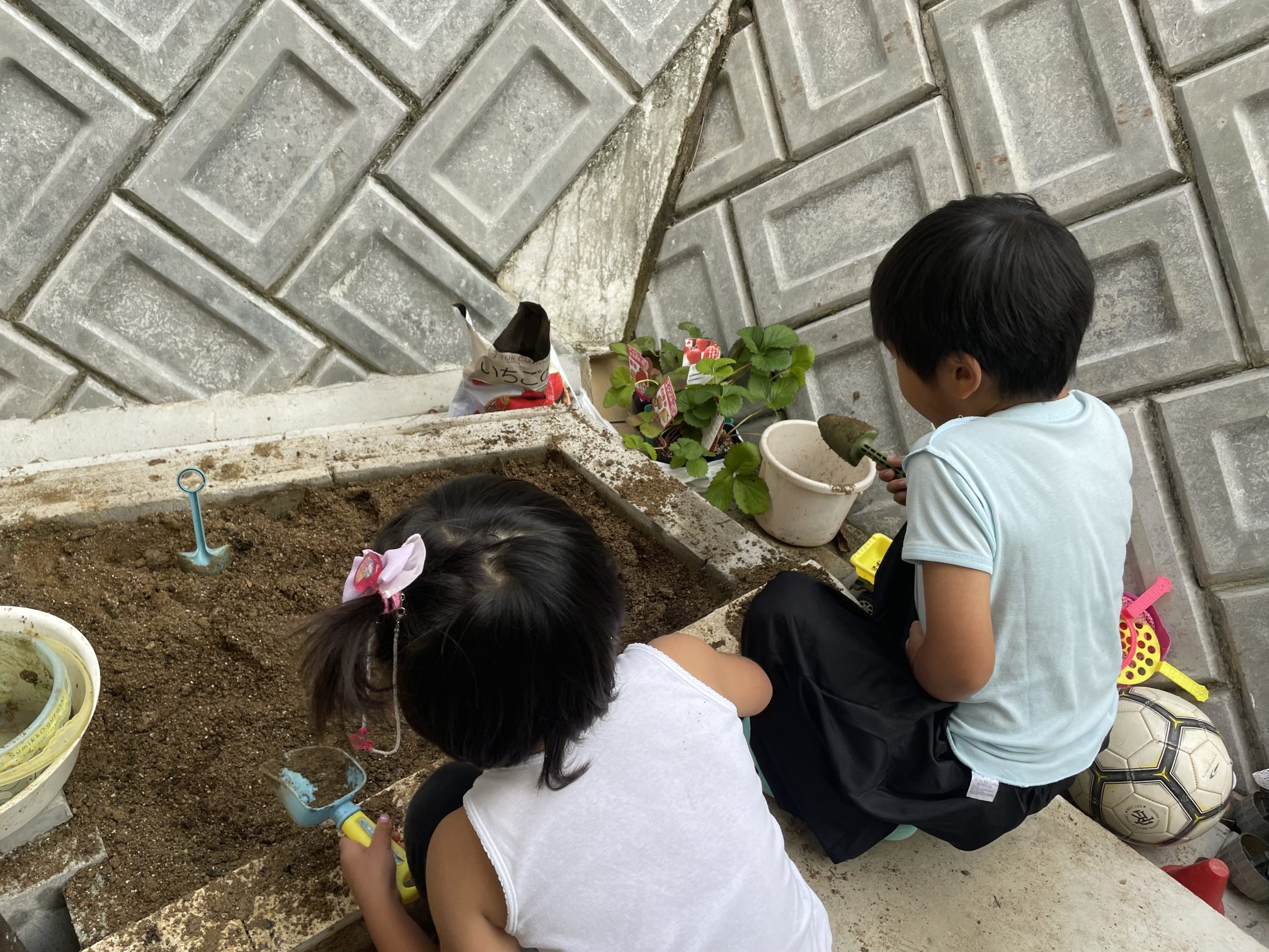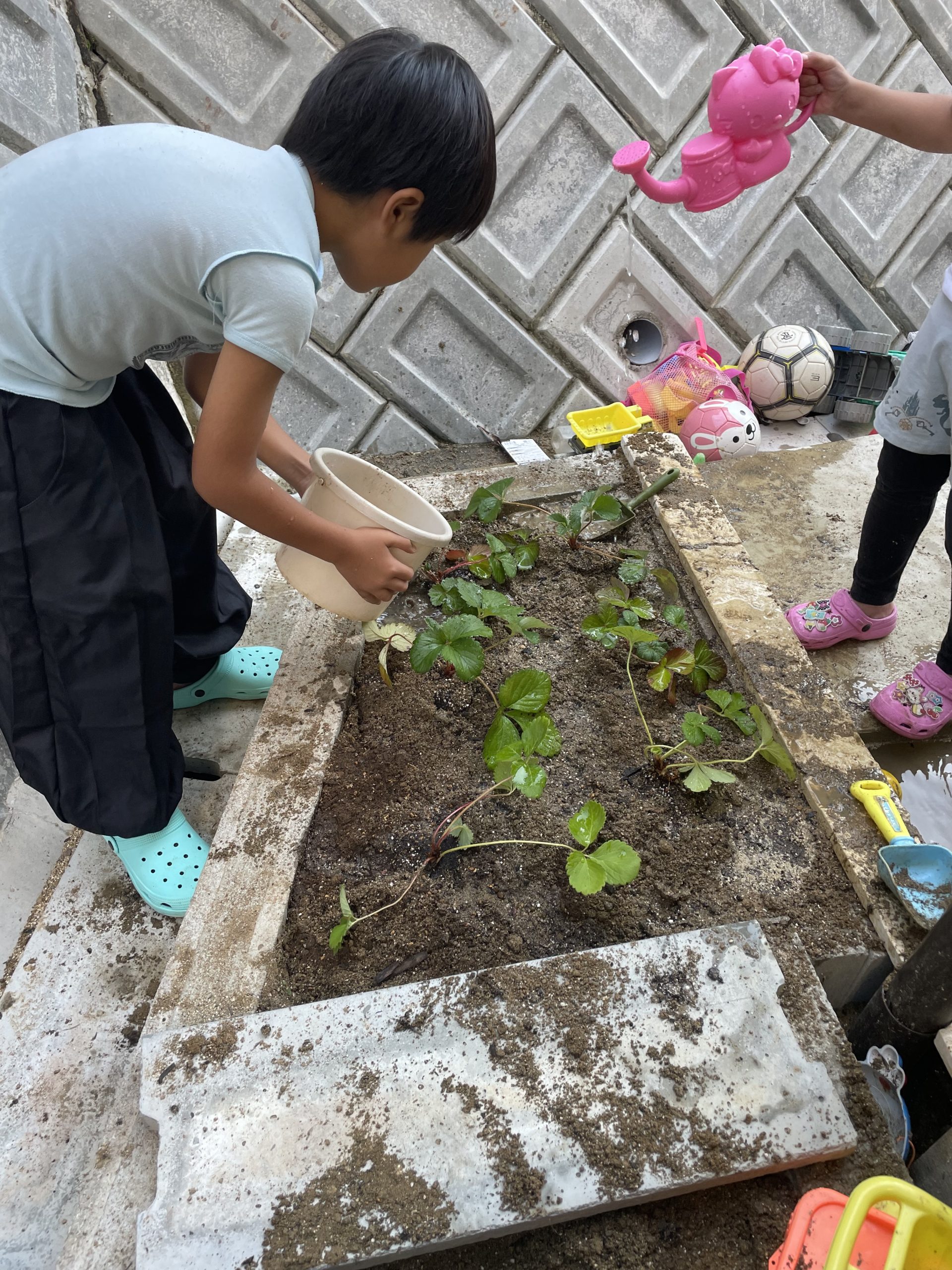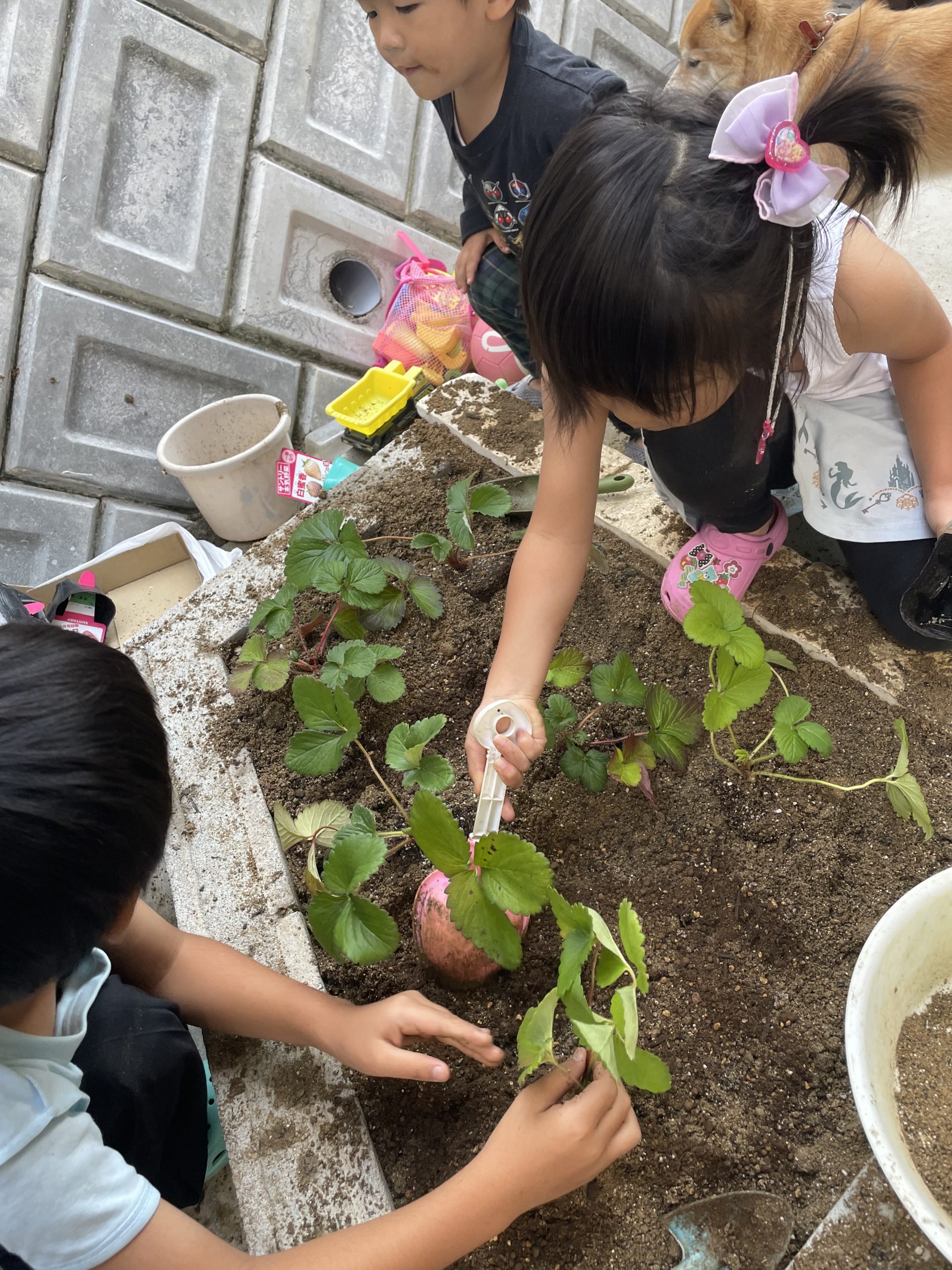 フルーツが好きな子ども達からのリクエストで、憧れていた家庭菜園スペースにいちごの苗を植える事になりました。