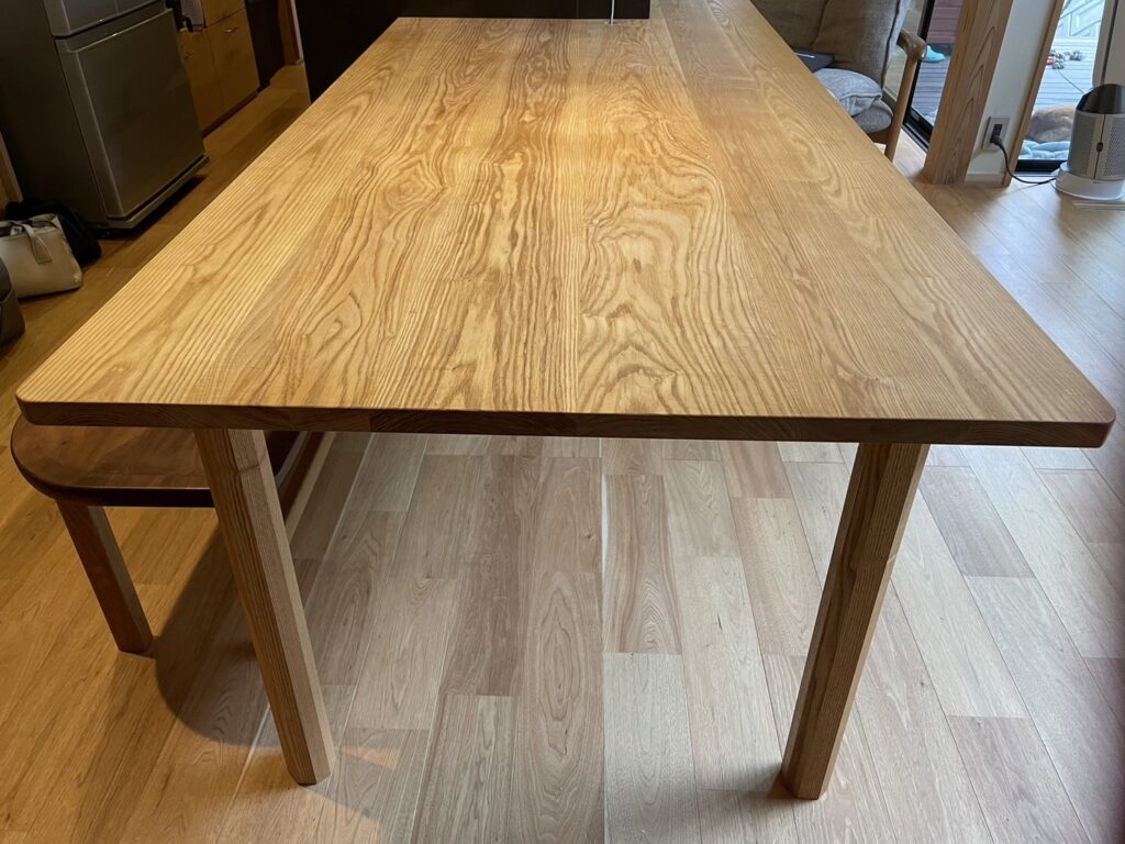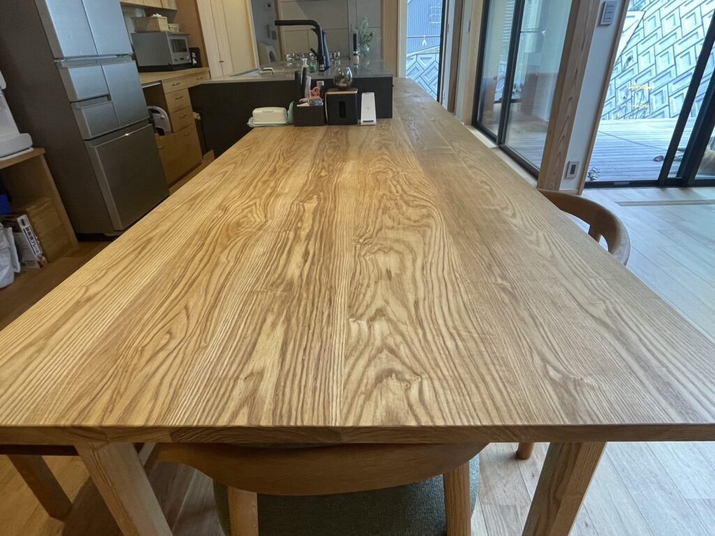 我が家はキッチンに横付けの【造作のダイニングテーブル】があります。