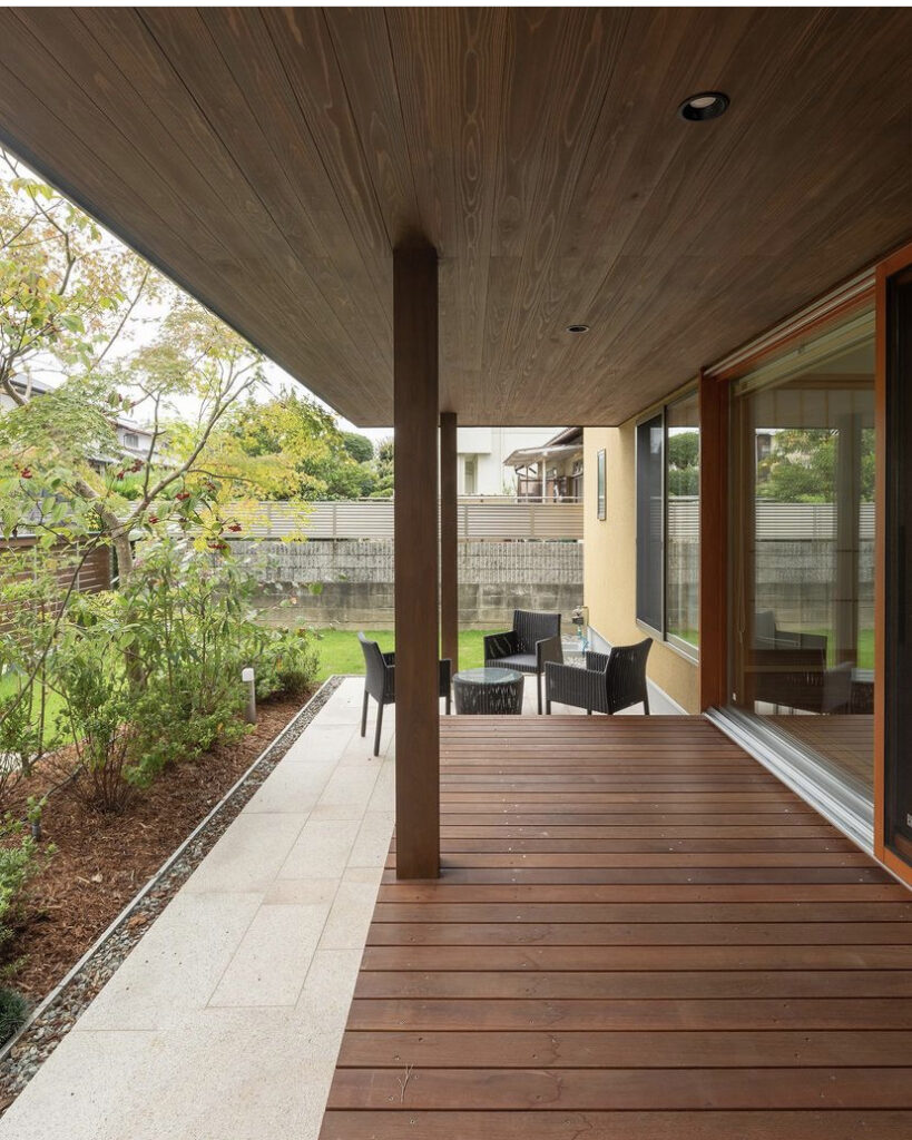 この深い軒のおかげで雨の日でも外で過ごすことが出来る居心地の良い空間となります。