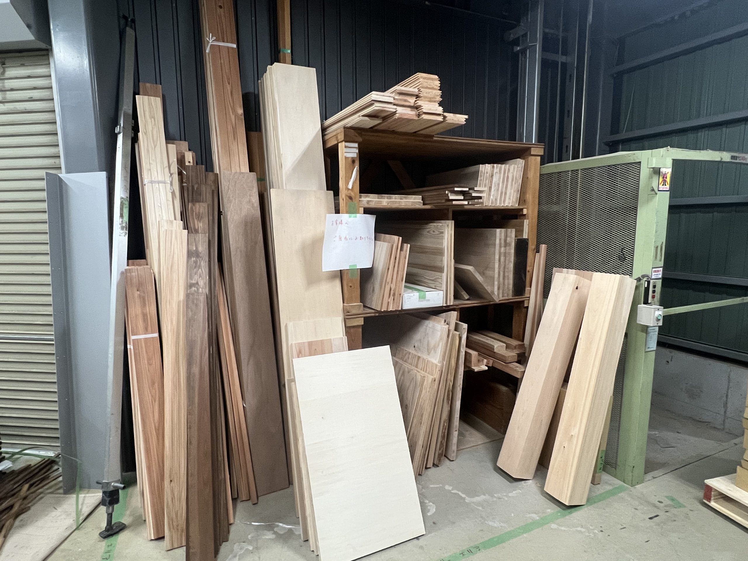 屋根裏に使用する杉板材や、可動棚に使用するシナランバーなど、