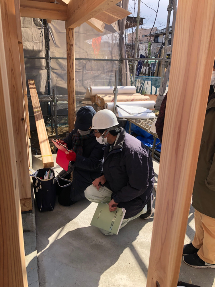 北摂地域の皆様にも、コアー建築工房で建てる木造の注文住宅を身近に感じていただけるよう、現在大工さんと職人さんが現場で工事を行って下さっているところです。