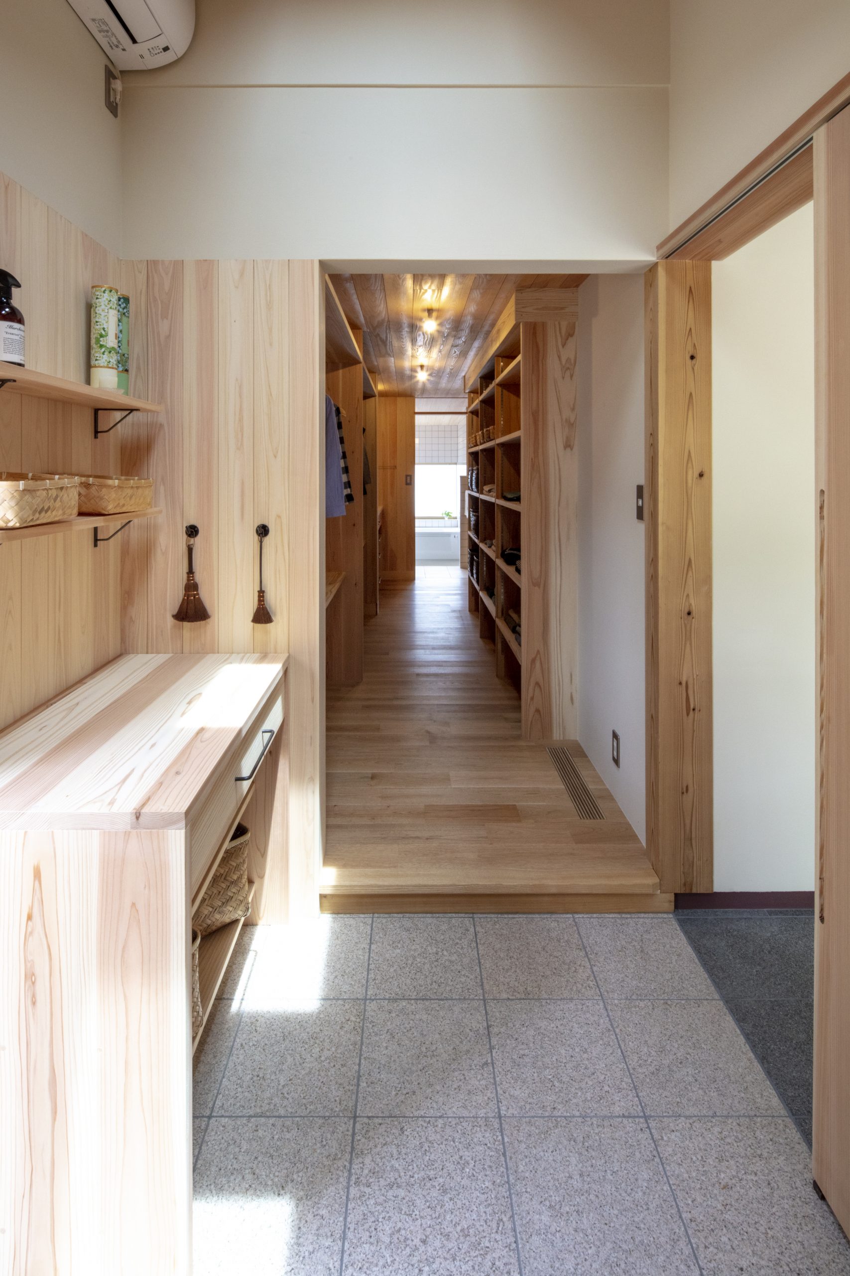 トイレや廊下の部分は内装の仕上げに杉板を使用しています(↑写真右側)。ここ最近の新築物件でも内壁仕上を一部板張りにして、木の雰囲気を味わえるような物件を見かけます(↓写真)。