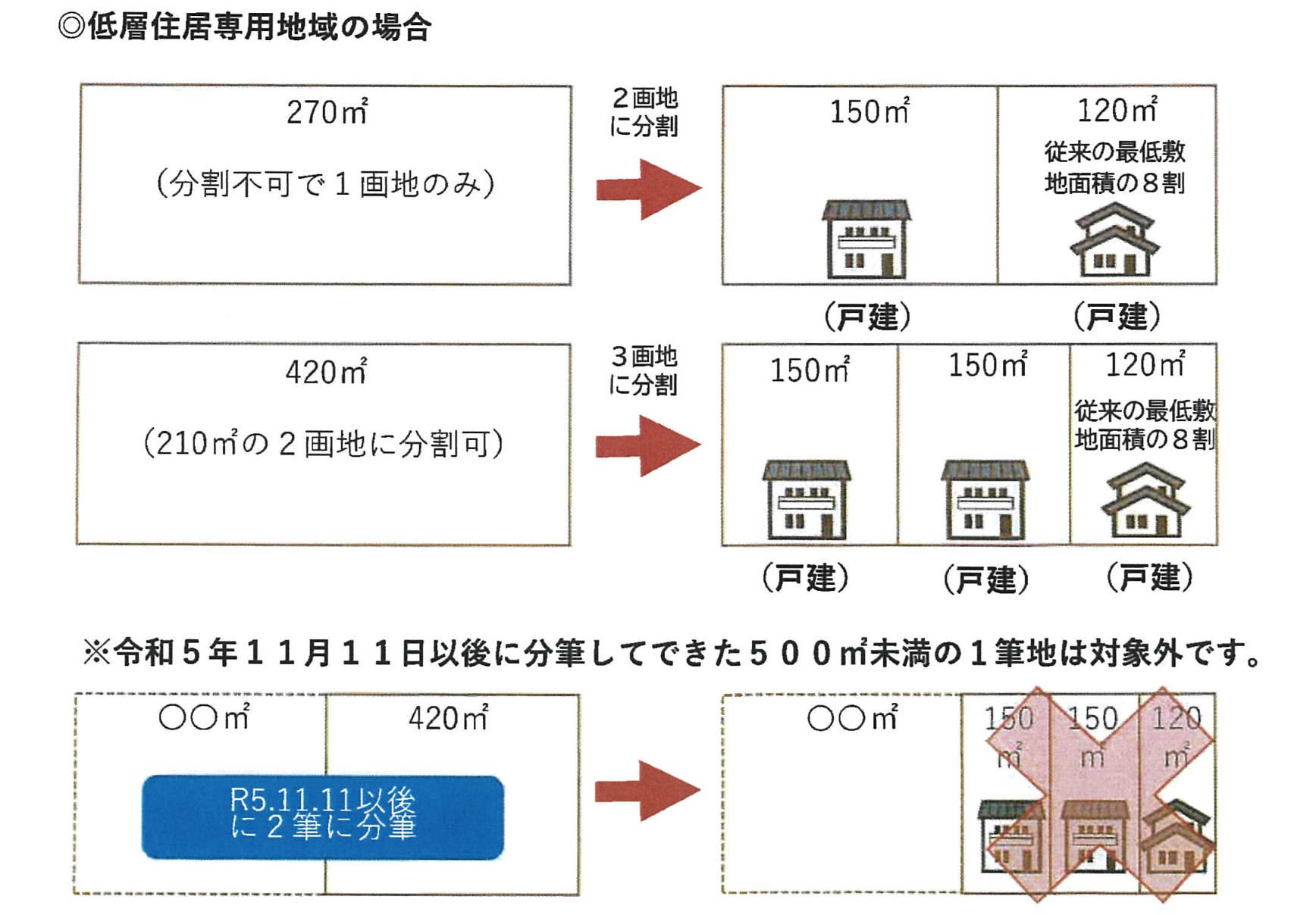【最低敷地面積】という制限があり、土地を小さく分けることができない場合があります。