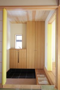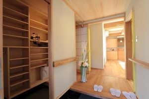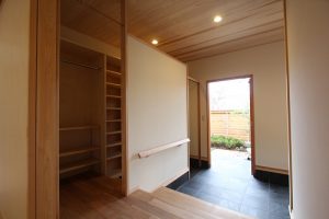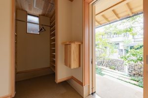 ぬれたカッパやコートをSRで脱いで室内へ、、、