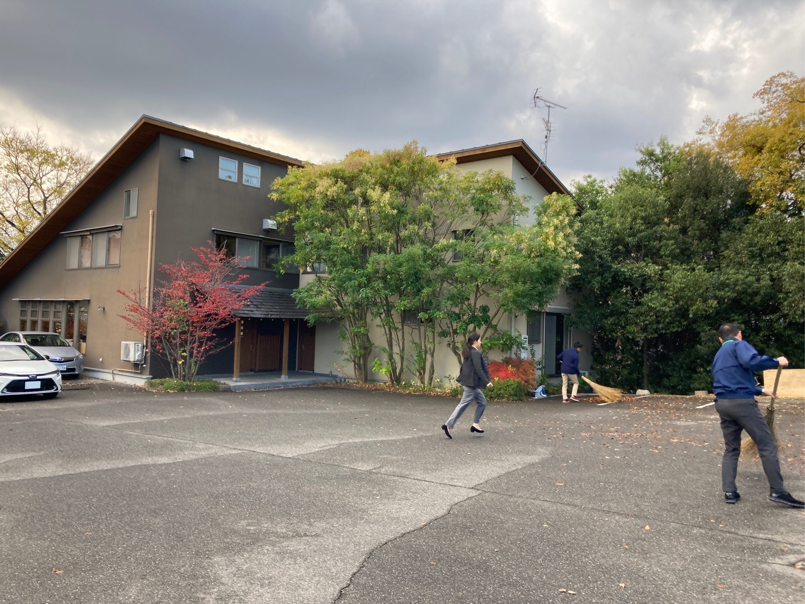 毎朝社員総出で清掃しているのですが、翌朝出勤するともう落ち葉だらけ!