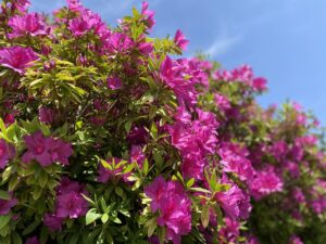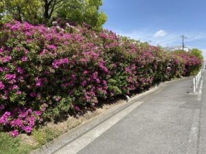 コアー建築工房の隣で、ツツジが咲き揃い、見ごろを迎えようとしています。ウィキペディアの解説通り、その美しさに思わず足を止めて見入ってしまいます。
