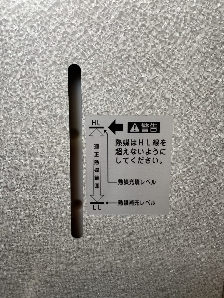 その熱媒体も少しずつ減っていくので、たまに残量の確認をするのですが適正範囲内で問題なしと確認できました。