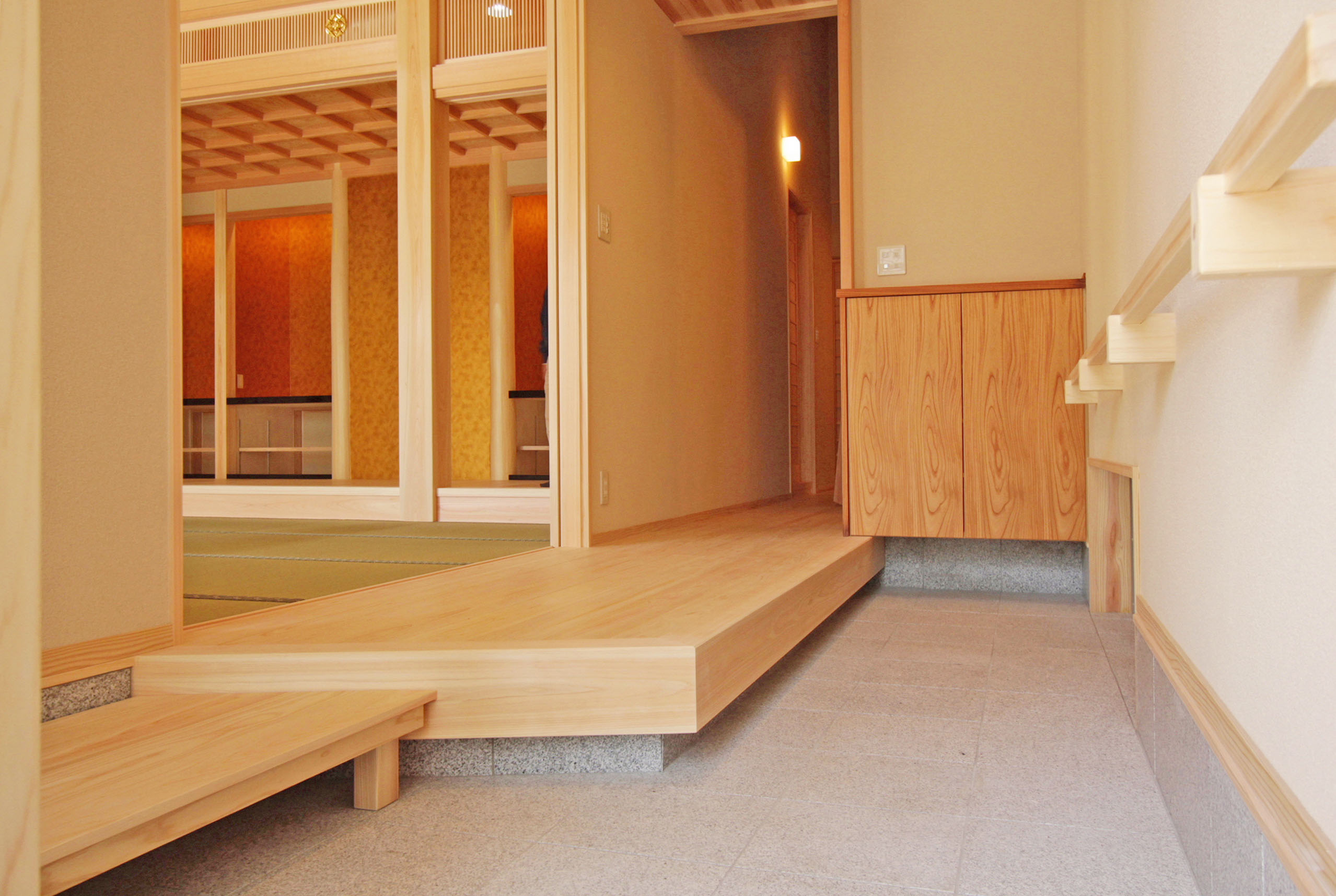 参詣者の方も出入りしやすいように、上がり框は広々と設けました。