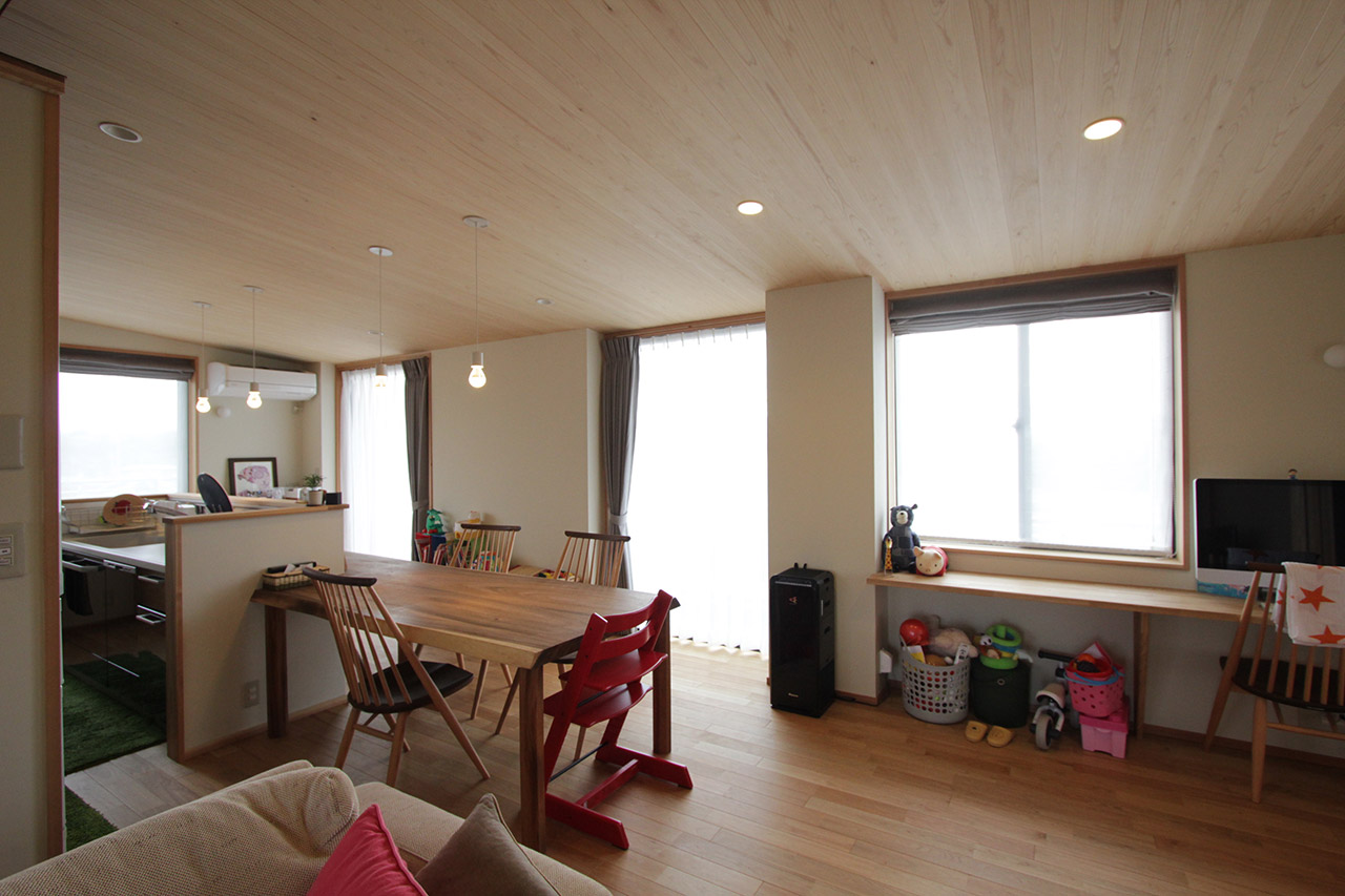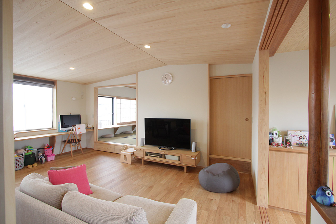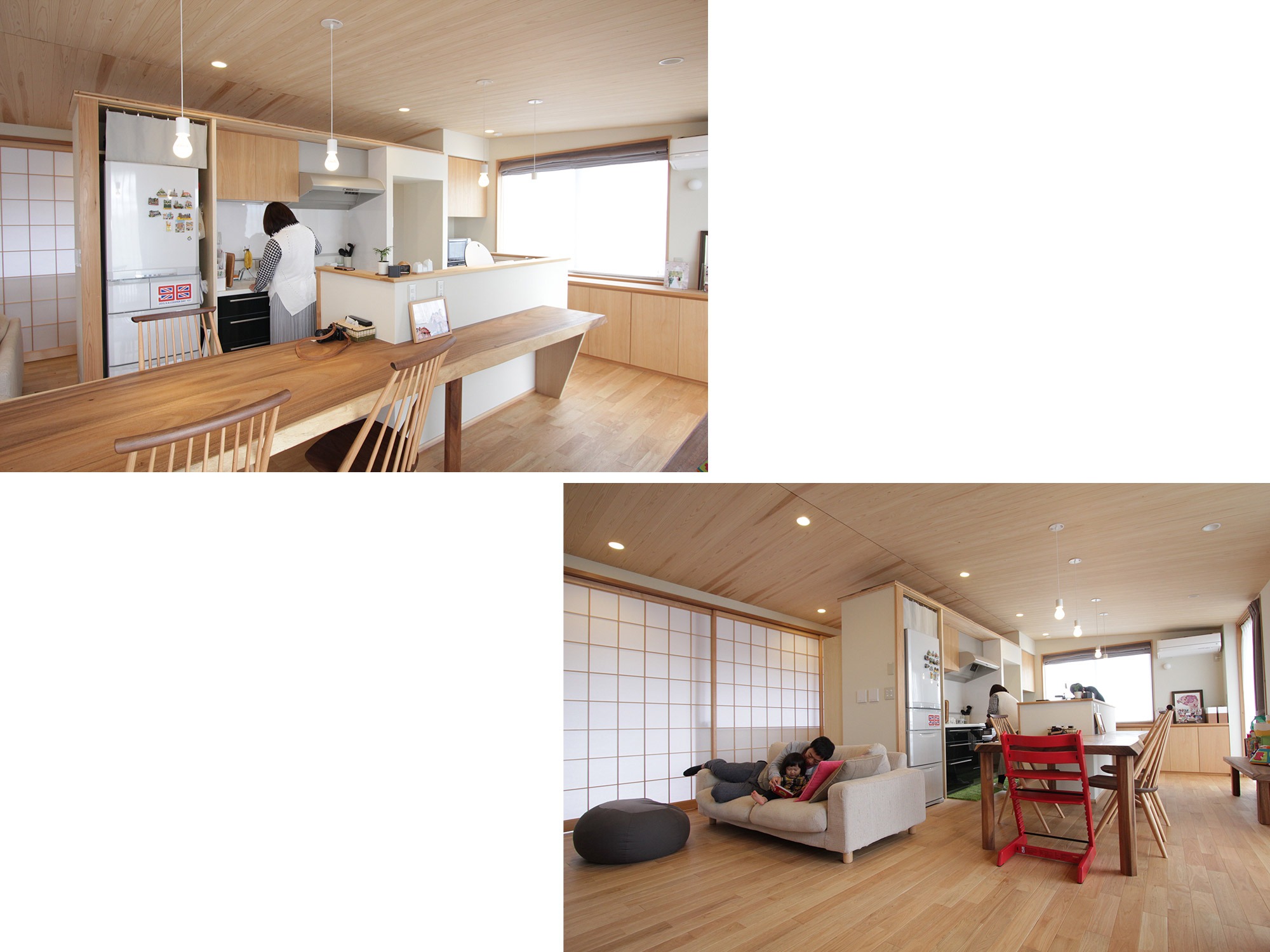 屋根や外壁を一新し、断熱性能を高め、室内は木の香りいっぱいの2世帯が暮らしやすい家に生まれ変わりました。
