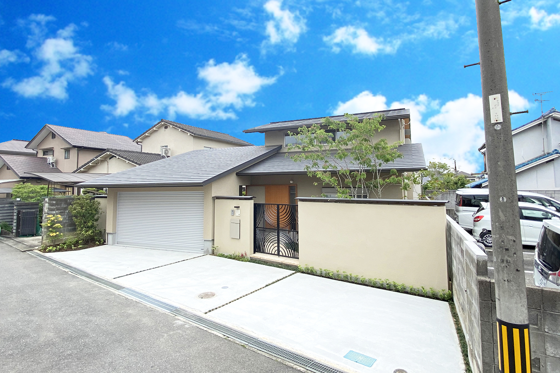 生徒さんや音楽仲間が来やすい様に駐車場は広めに計画しました。大きな吹抜けの広がる室内にはピアノの音色が響きます。