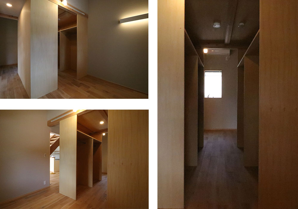 寝室はクローゼットで2つに区切り、それぞれの空間へ。