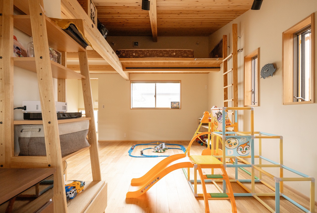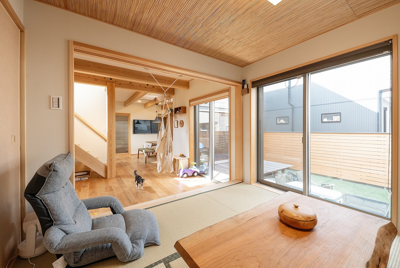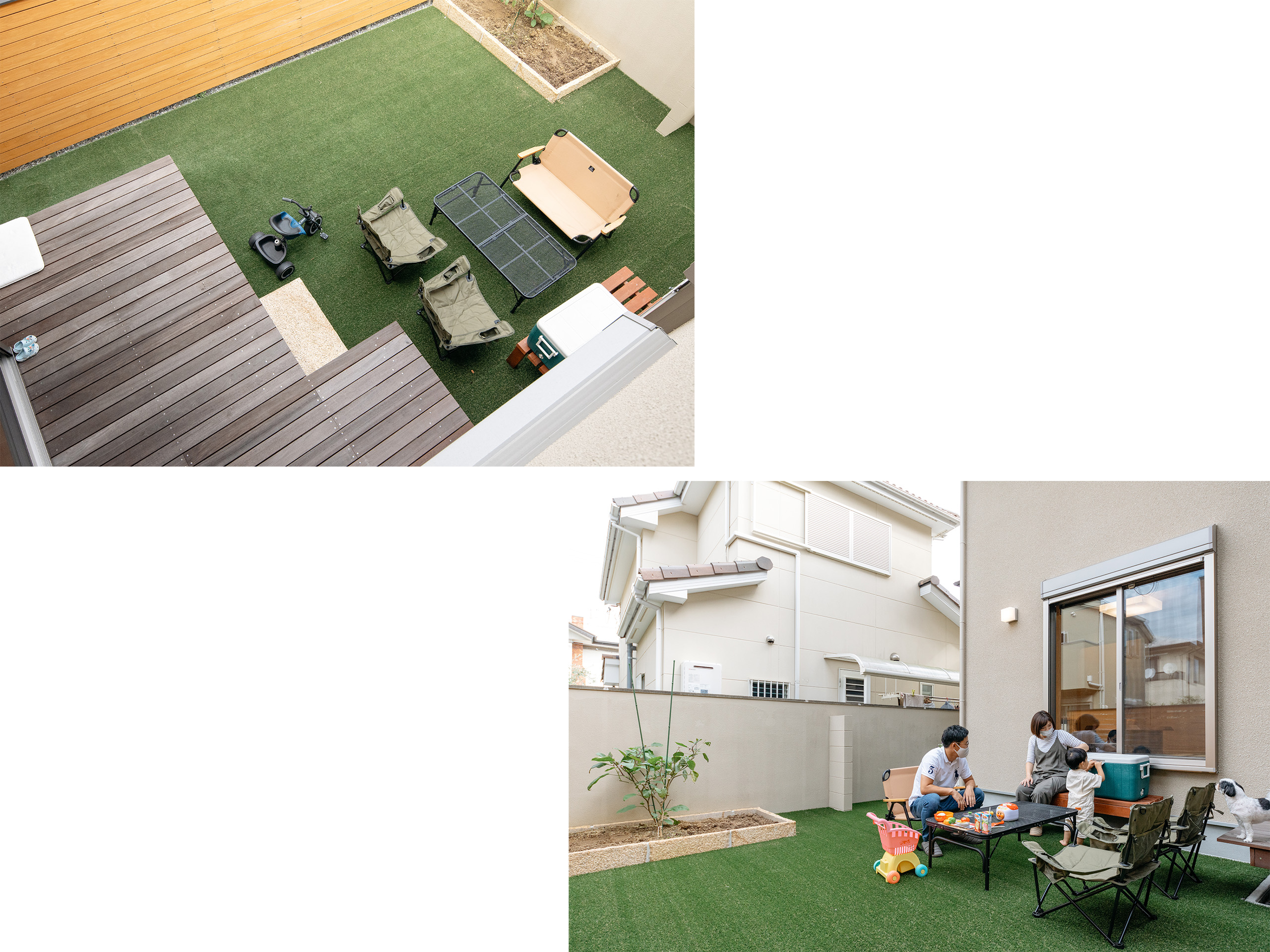 大きなお庭で遊ぶお子さまと犬たちの様子はお家のどこからでも見守れます。