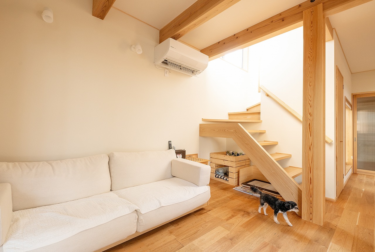 階段をスケルトンにすることでリビングとのつながりも生まれます。