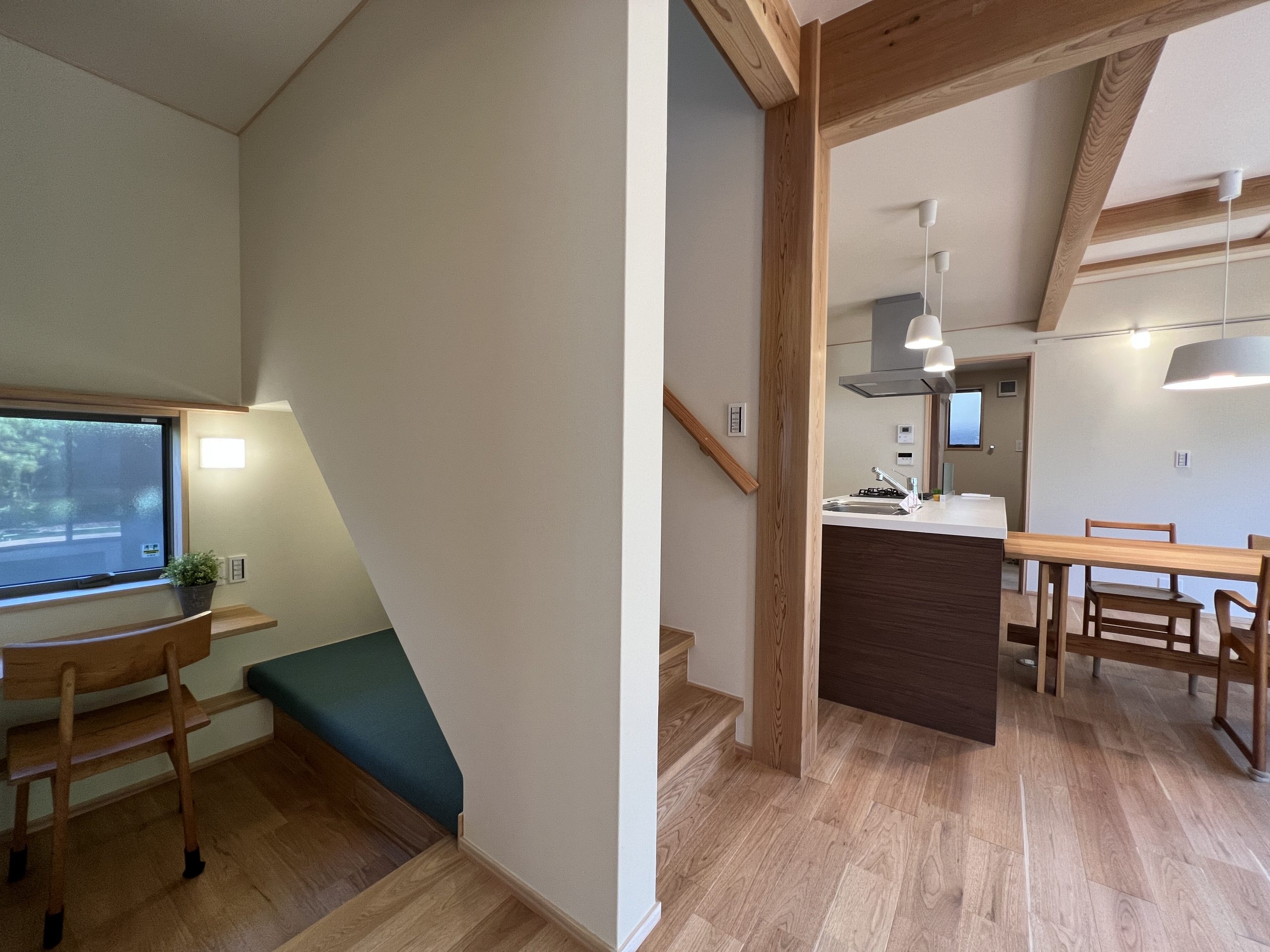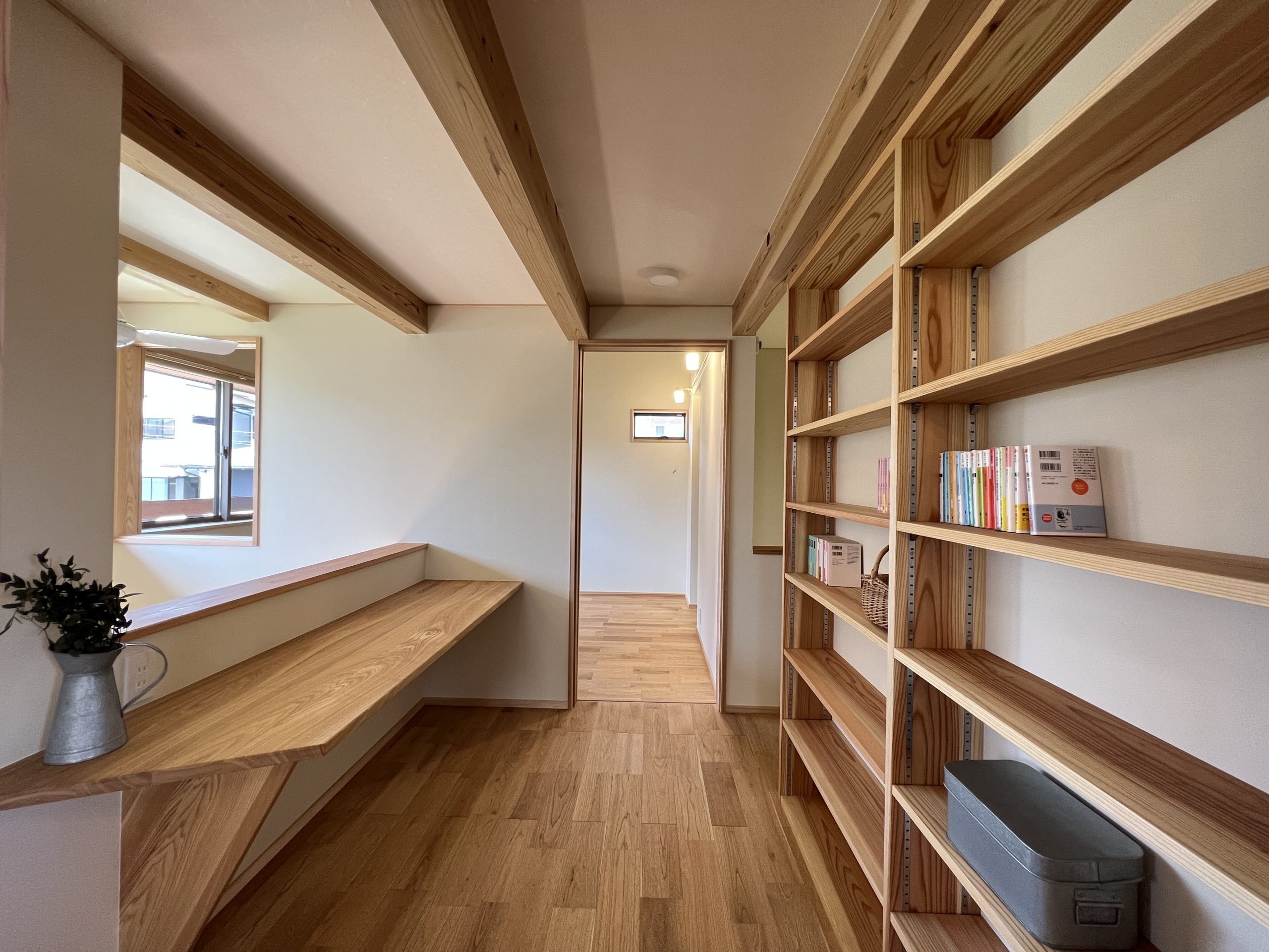 1階に設けた寝室にはご主人の書斎、リビングの近くには奥様のDENスペースとご夫婦それぞれの場所を設けました。