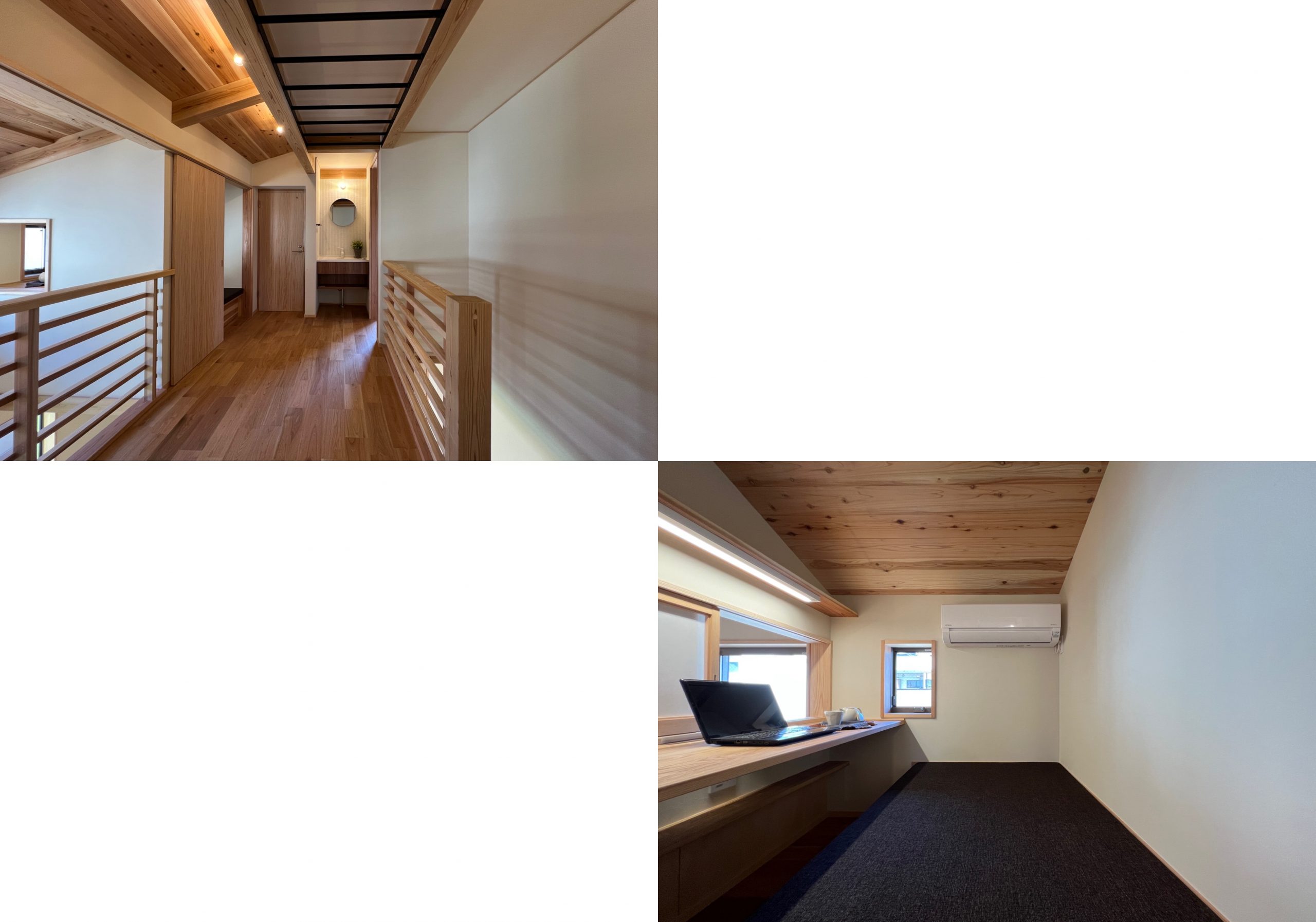 ソファーベンチを設けた書斎は家族の息づかいを感じる落ち着く空間です。