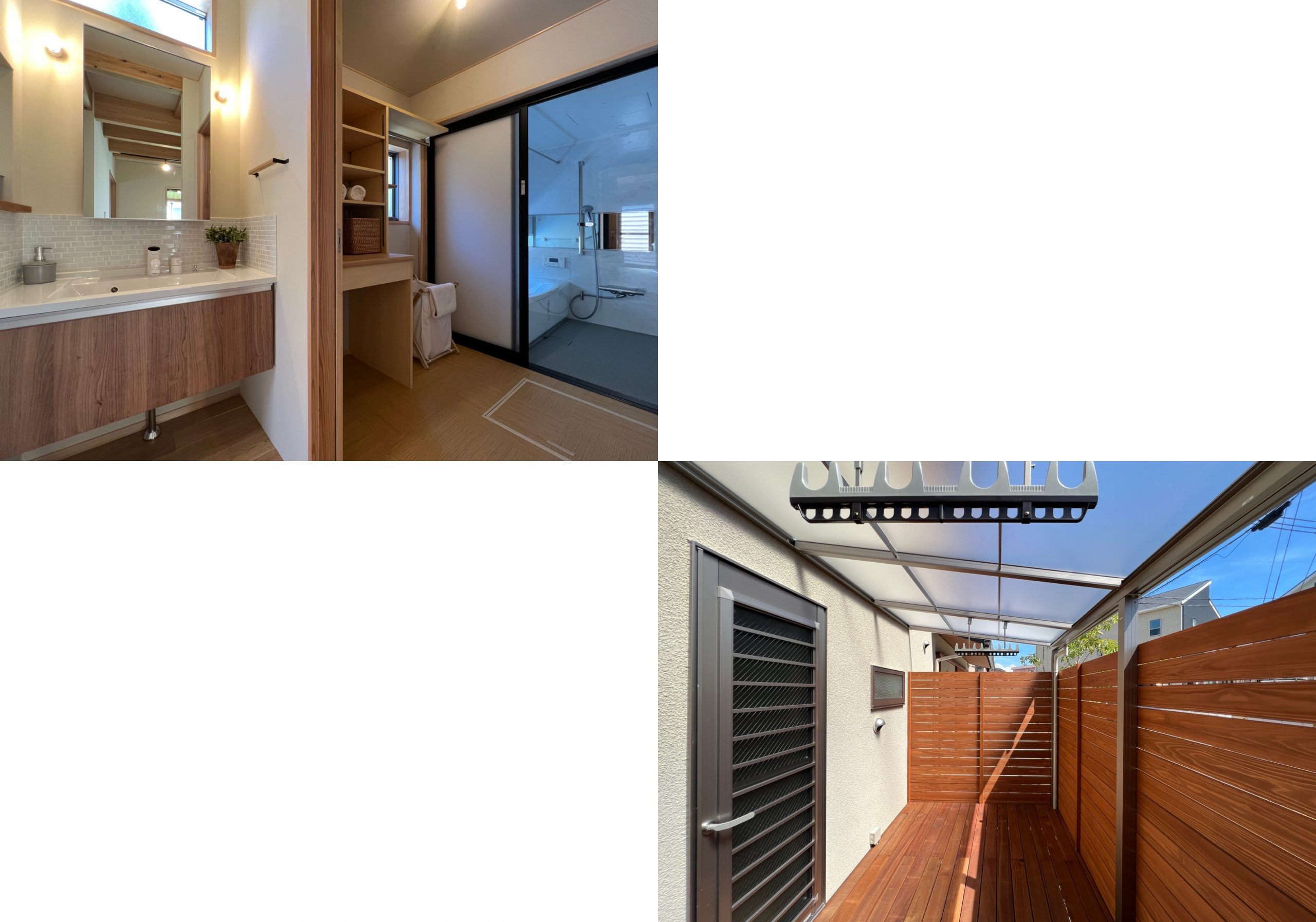 敷地を活かした三角形の広いお庭のある家族4人が暮らすお家。