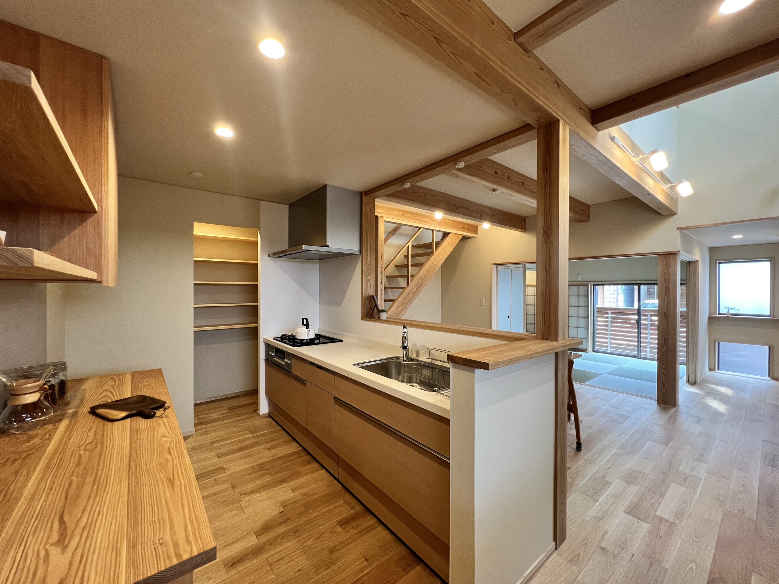 陽あたりの良いリビングに自然と家族が集まるお家になりました。