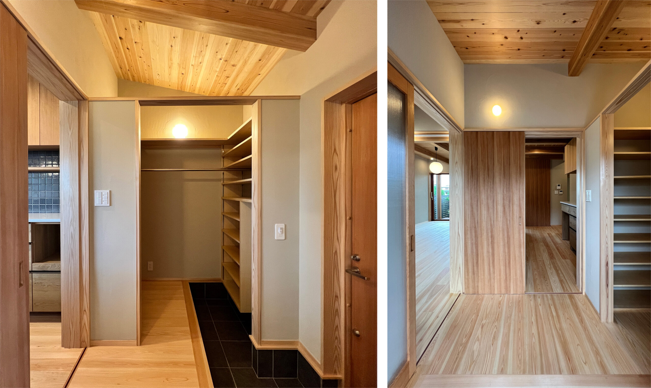 2台分の広々としたガレージは室内から眺められる設計で、車との一体感を楽しめます。