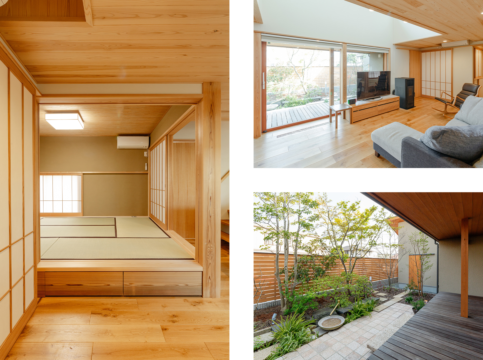 塾スペースと自宅をしっかり分けられ、自宅はご家族だけのくつろぎ空間に。そんなリビングからは季節の移ろいが感じられるお庭が広がるお家です。
