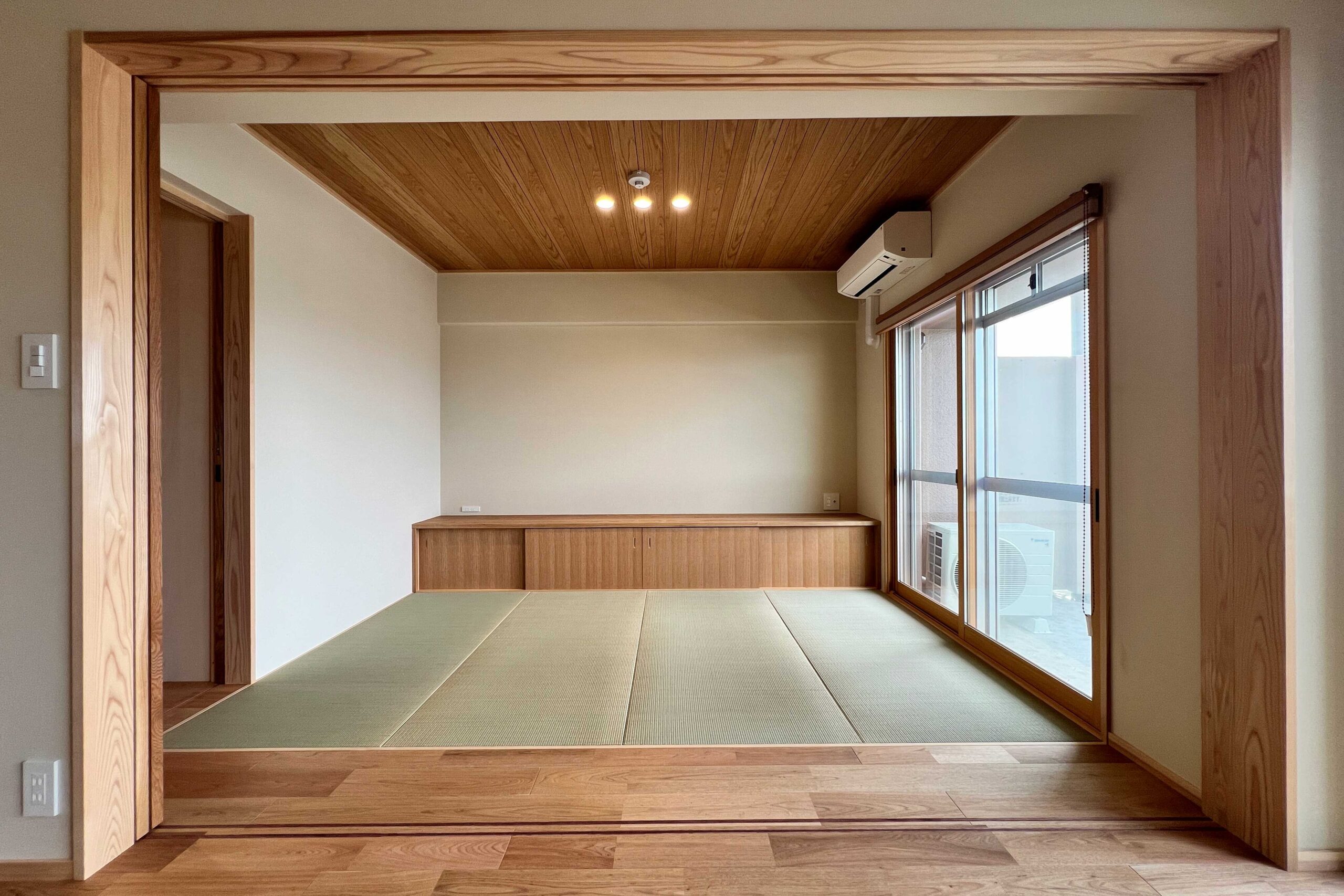 「自然と家族が集う」をテーマにダイニングスペースの横には畳のリビング空間を設けました。