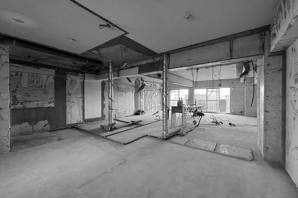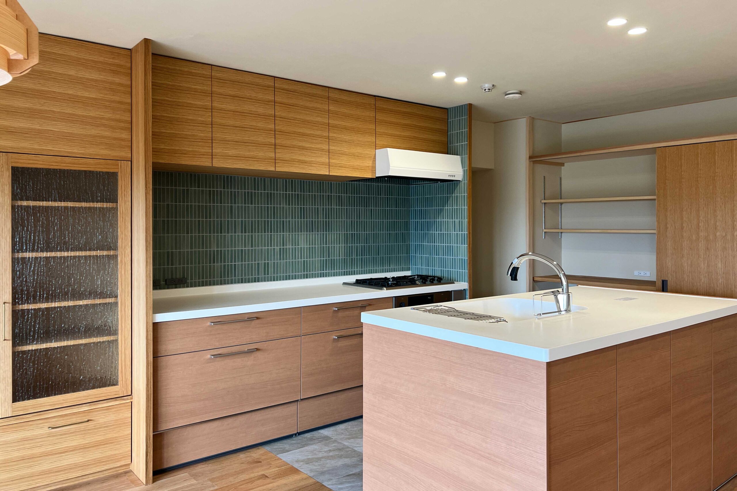 キッチンには造作家具を設け、LDKで使用する小物をすっきりと収納。