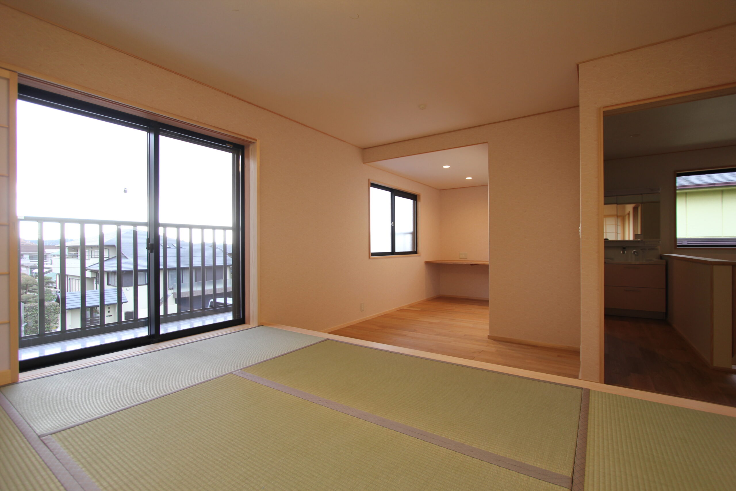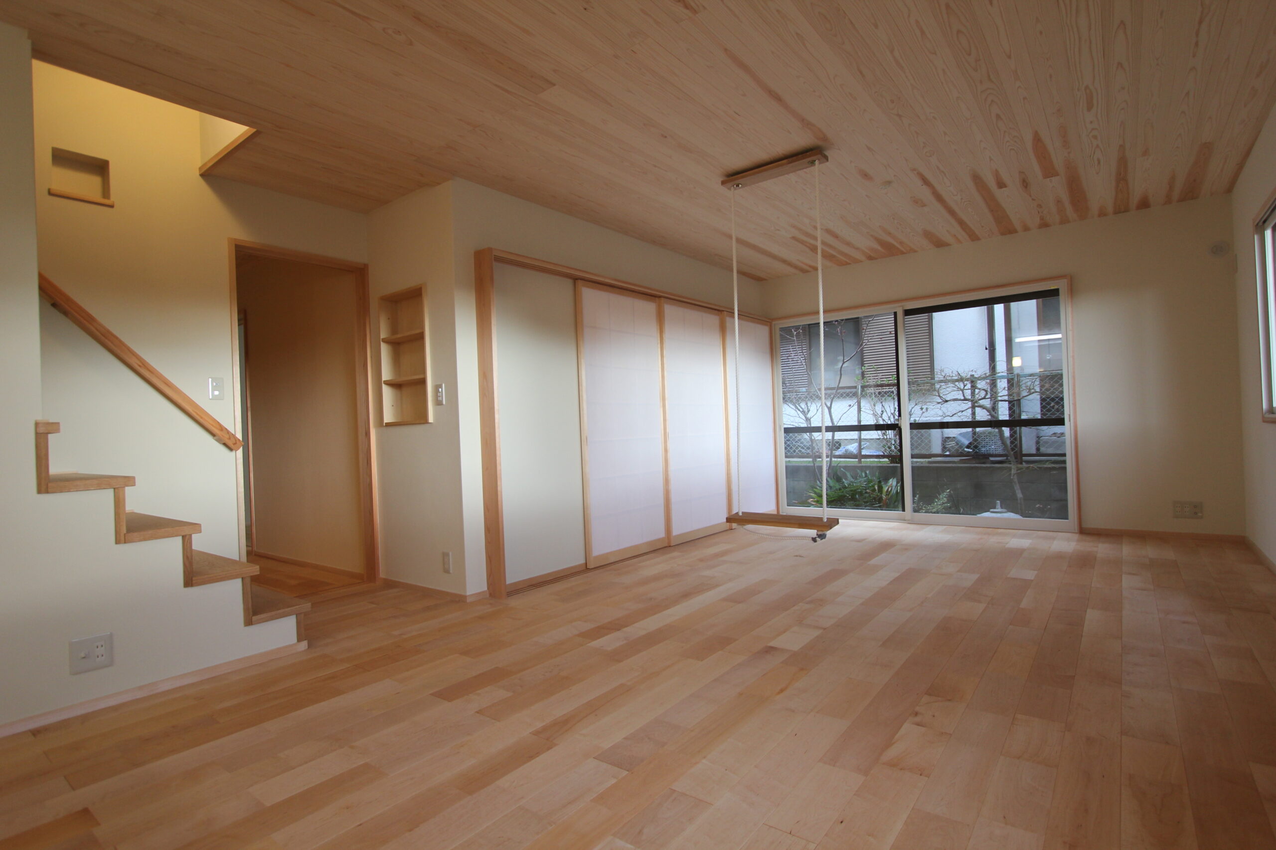 玄関は30年経過した松の床はそのままに新しく生まれ変わりました。LDKはひと続きの空間へとプラン変更。家族が集まりやすくなりました。北西側の和室は奥様のワークスペースとしてお部屋を広くし