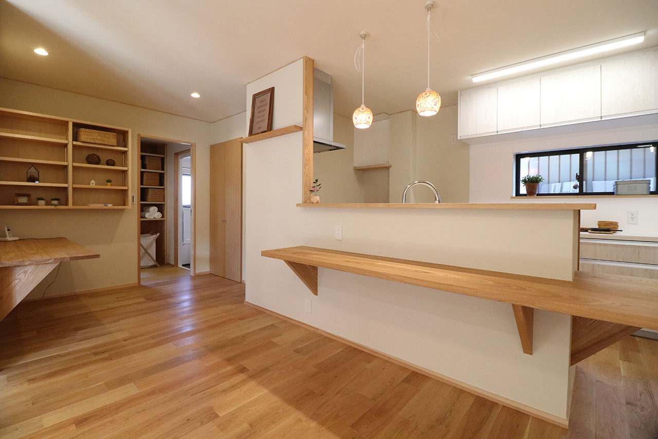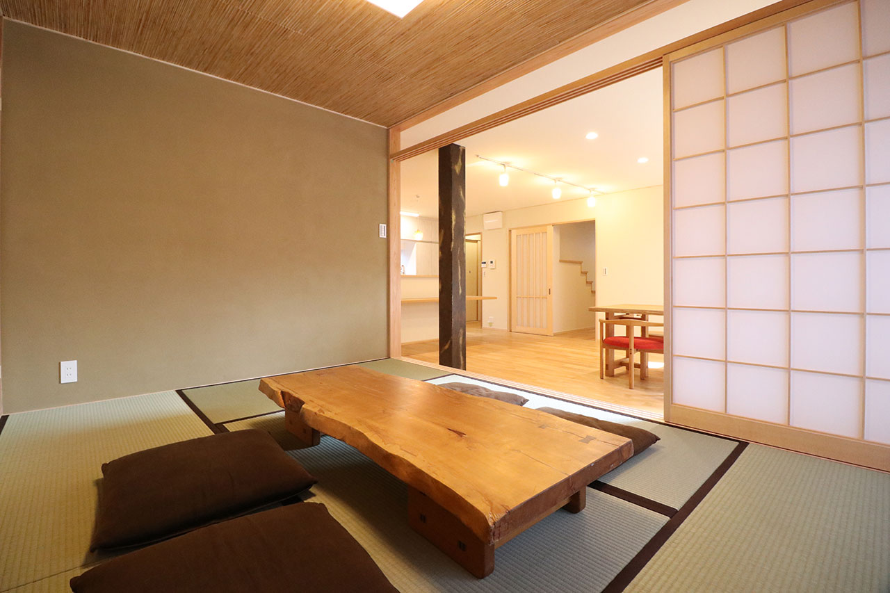 キッチンは家族の会話がはずむ対面式に。二間続きだった和室を改修し、