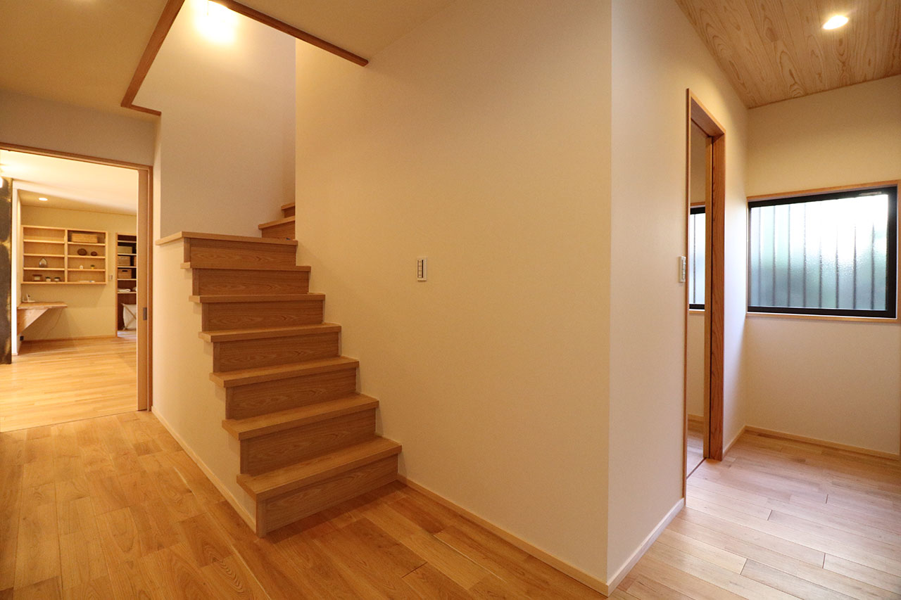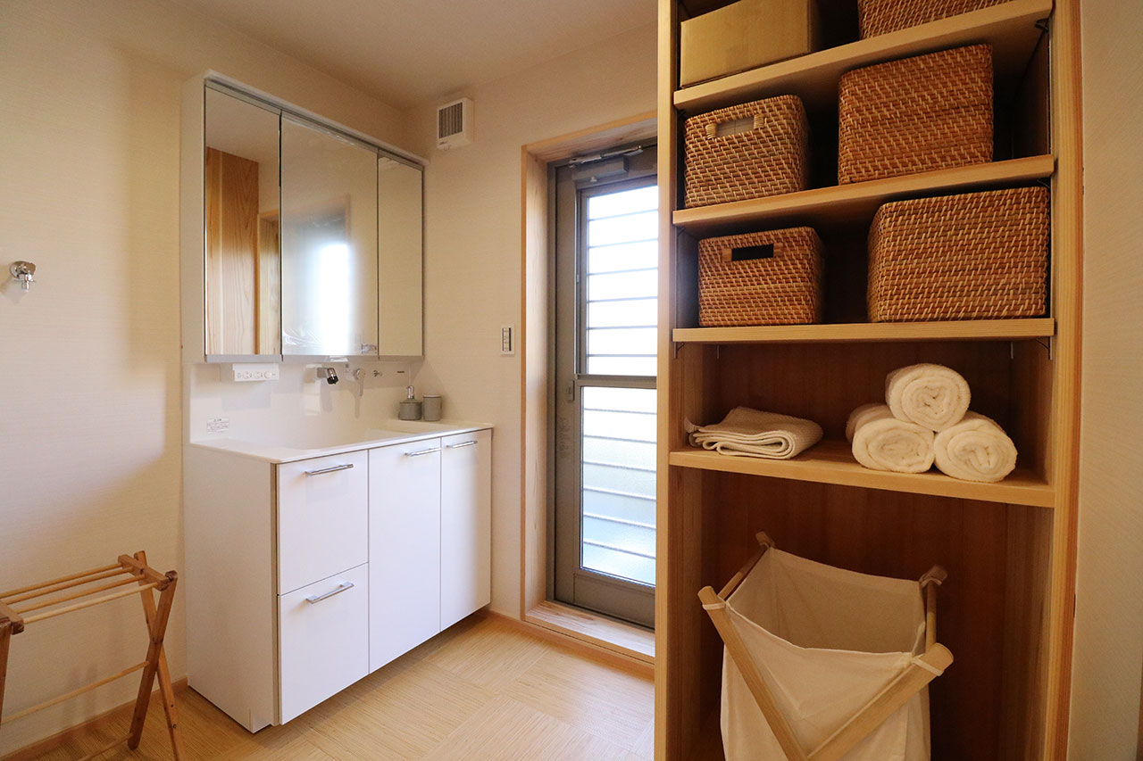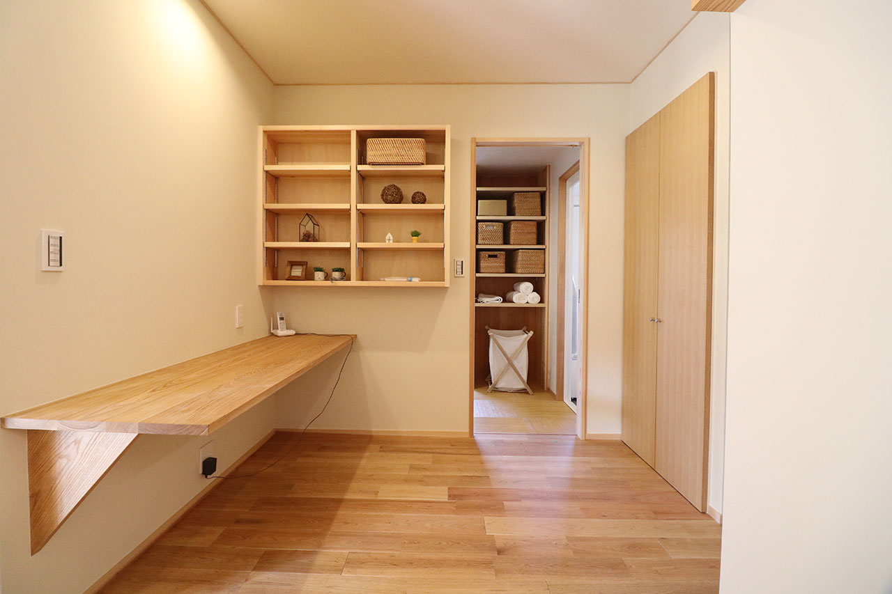 水廻りを広く、残りの空間にご主人の書斎スペースも設けることができました。