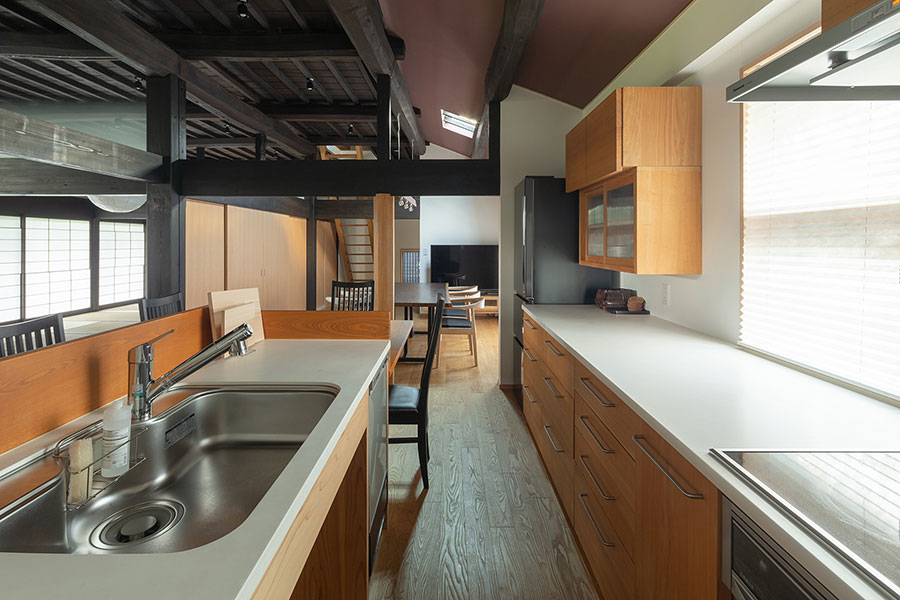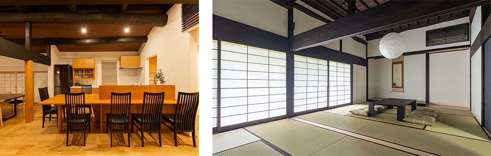 梁や柱はそのまま活かし、古き良き日本の家を現代の技術で再構築しています。