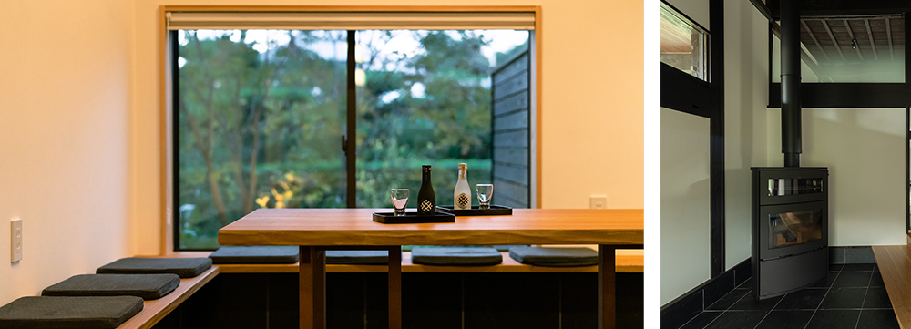 ベンチや薪ストーブなど人が集まり、会話が弾む空間になっています。