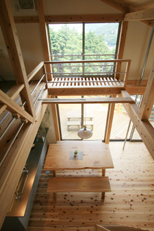 風邪の良く通るロフトには一気に降りられるポールが添えられています。
